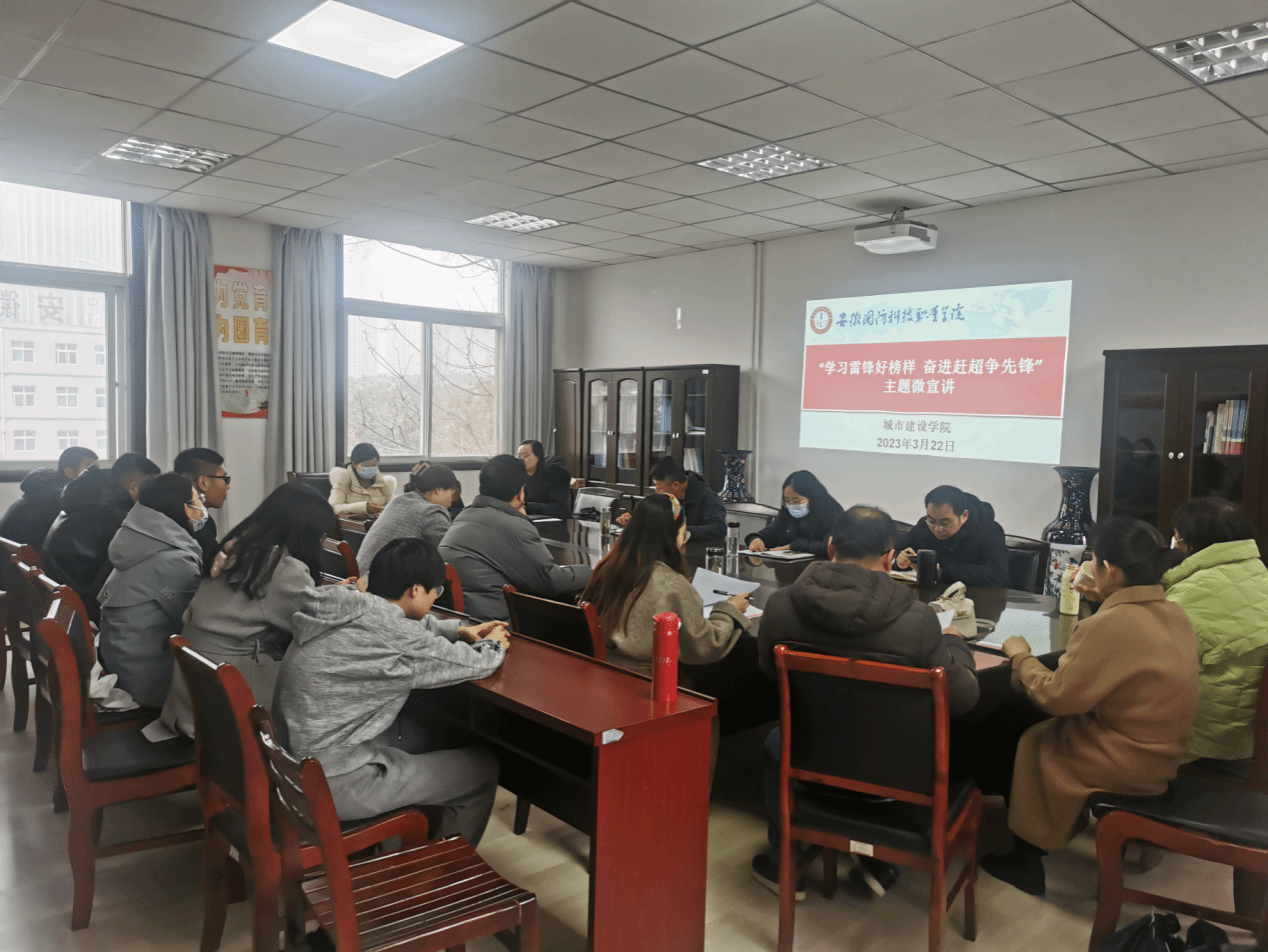 3月22日,城市建设学院党总支开展了“学习雷锋好榜样,奋进赶超争先锋”雷锋精神专题研讨会。会上,全体党员首先观看了《不忘雷锋精神 弘扬优良传统》的微电影,通过观看微电影,学习雷锋同志的生平事迹;各位党员围绕“怎样弘扬雷锋精神”的主题,结合自己的工作和生活实际进行交流研讨。