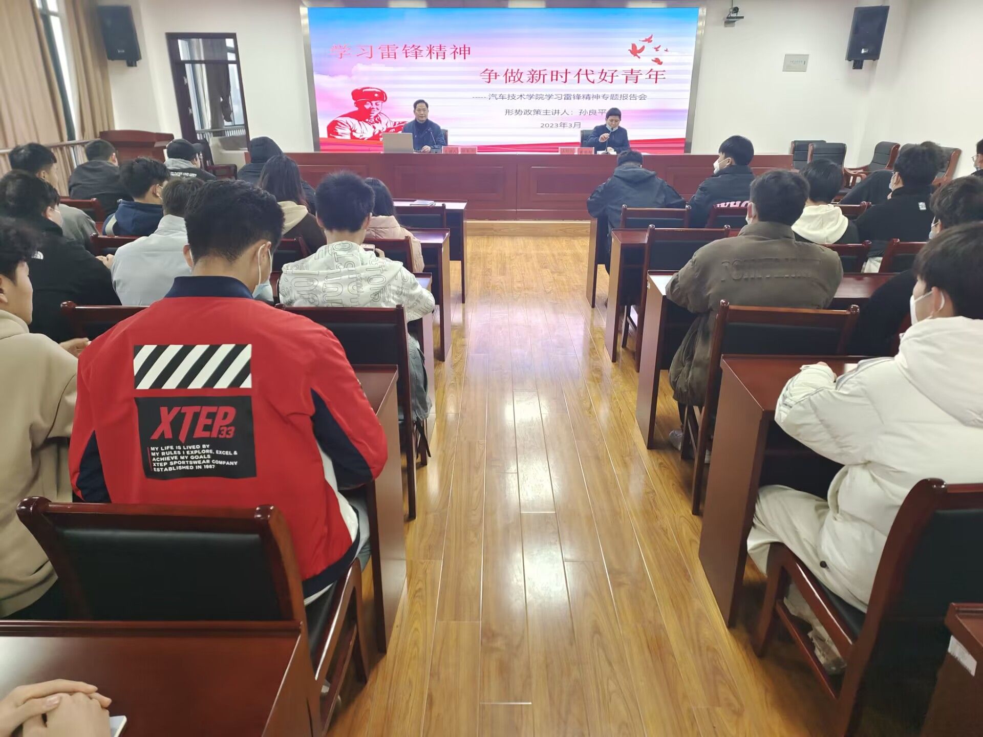举办主题微宣讲。3月17日下午,汽车技术学院举办了“学习雷锋精神 争做新时代好青年”主题报告会,院党总支书记、院长孙良平从雷锋同志的生平事迹、雷锋精神的深刻内涵以及学深弄懂悟透践行雷锋精神等方面,为学院团总支学生会和班级全体学生干部作报告。报告真挚感人、催人奋进,让与会学生干部深受教育和鼓舞。