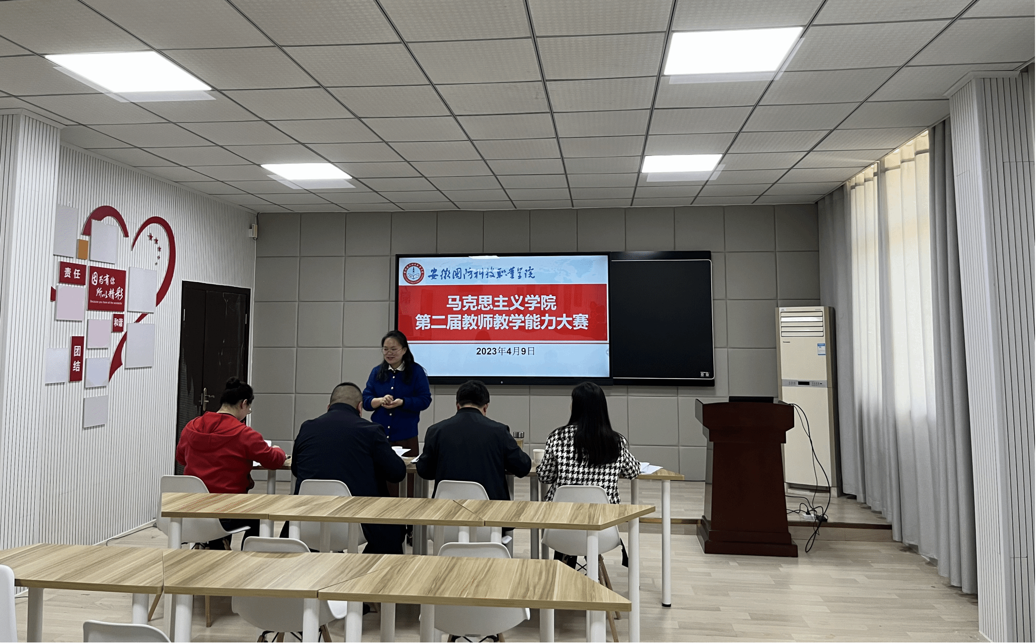 本网讯(马克思主义学院 武晓璐)为进一步提升我院教师教学质量,促进教师综合素质统筹发展,努力锻造出一支教学设计优、教学能力强、教学效果好的专业教师队伍。我院依据教师教学能力比赛相关要求,于4月9日在知行楼503马院智慧教室组织开展院级教学能力大赛。比赛由马克思主义学院院长陈思主持,6支教师参赛团队参加。