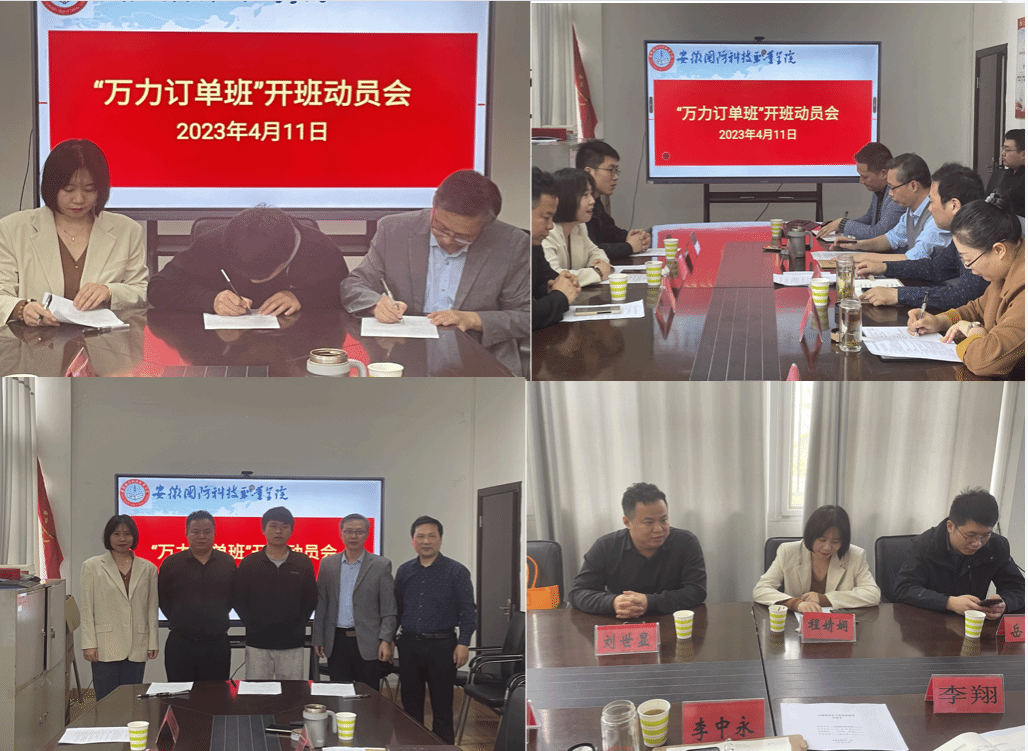 最后李中永做了总结讲话,他强调:一是校企合作是学校发展的需要,更是企业发展的需要,通过合作,学校和企业可以优势互补,资源共享,学校可以更好地发挥自身的人才培养优势,而企业则能更好地发挥资源优势和市场优势;二是希望校企双方能够以此为契机,加强科学研究、人才培养、学术交流和教学实践等方面的精诚合作,开拓创新,着力探索和发展校企合作的新领域、新途径;三是希望全体同学,珍惜自己的青春时光,珍惜自己的学习机会,扎实学习专业本领,发挥自己的聪明才智,在社会的熔炉里历练成为一名有用的人才。动员会结束后,学院、企业、学生三方举行了2021级“万力班”人才培养协议签字仪式并合影。