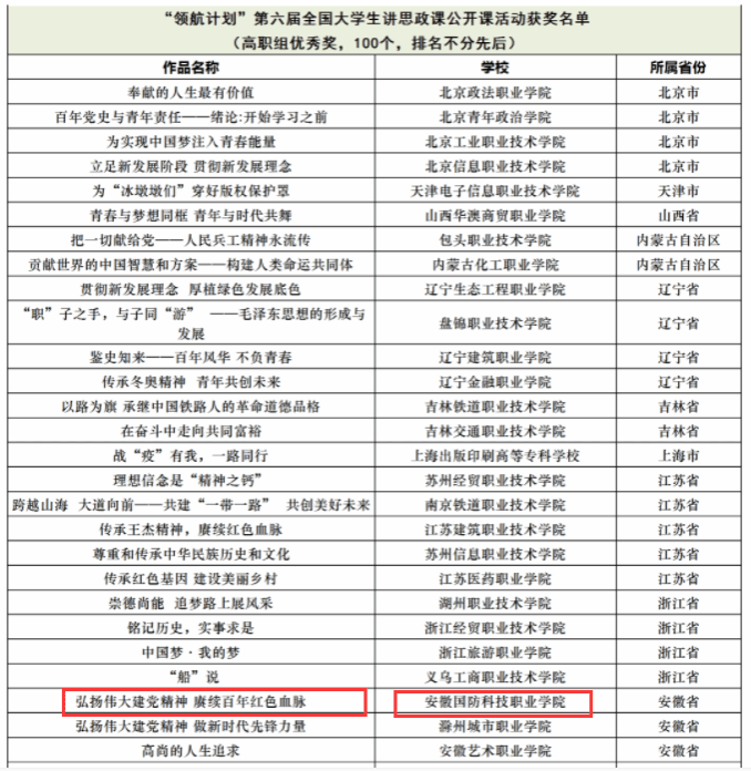 本网讯(马克思主义学院 武晓璐)近日,由教育部高校思政课教学指导委员会主办,南开大学马克思主义学院承办的“青春献礼二十大·强国有我新征程”第六届全国大学生讲思政课公开课活动评选结果揭晓。由马克思主义学院组织报送的张康婷、叶丙武同学的作品《弘扬伟大建党精神 赓续百年红色血脉》经过激烈角逐,在本届活动中脱颖而出,荣获高职组优秀奖。