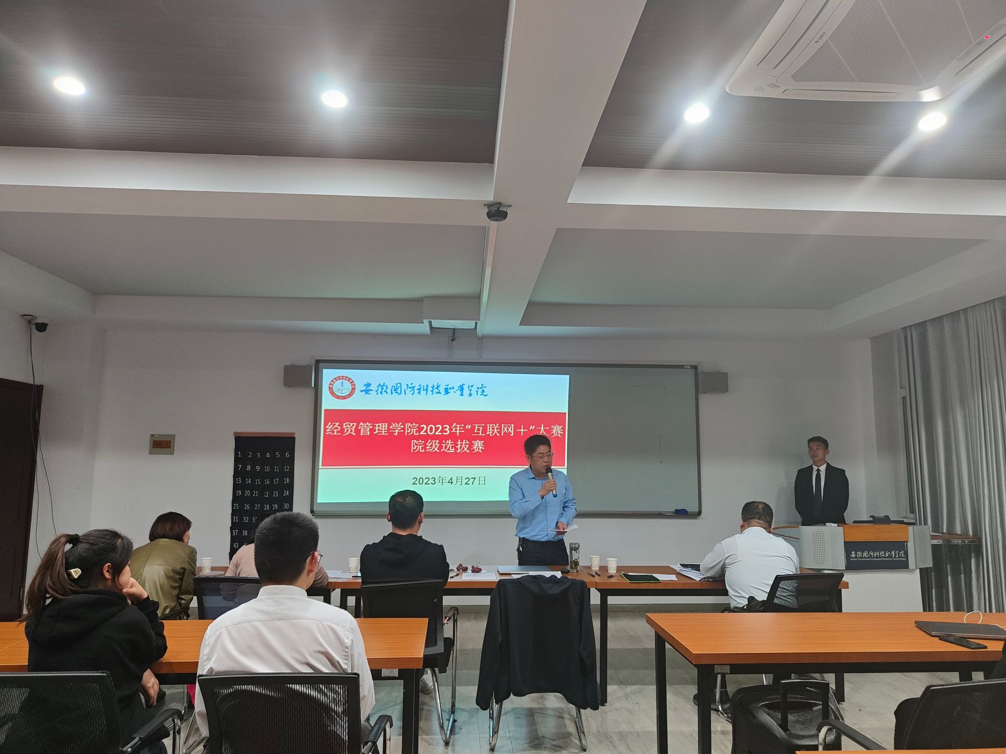 本网讯(经贸管理学院 许凤麟)为提升学院学生创新创业能力,4月27日晚,经贸管理学院在实训楼403教室举办了“互联网+”大学生创新创业大赛院级选拔赛,党总支书记刘峰、院长杨力、副院长杨学分、组织员张圣霞及办公室主任付玉梅担任评委,共17支项目团队参加本次选拔赛。