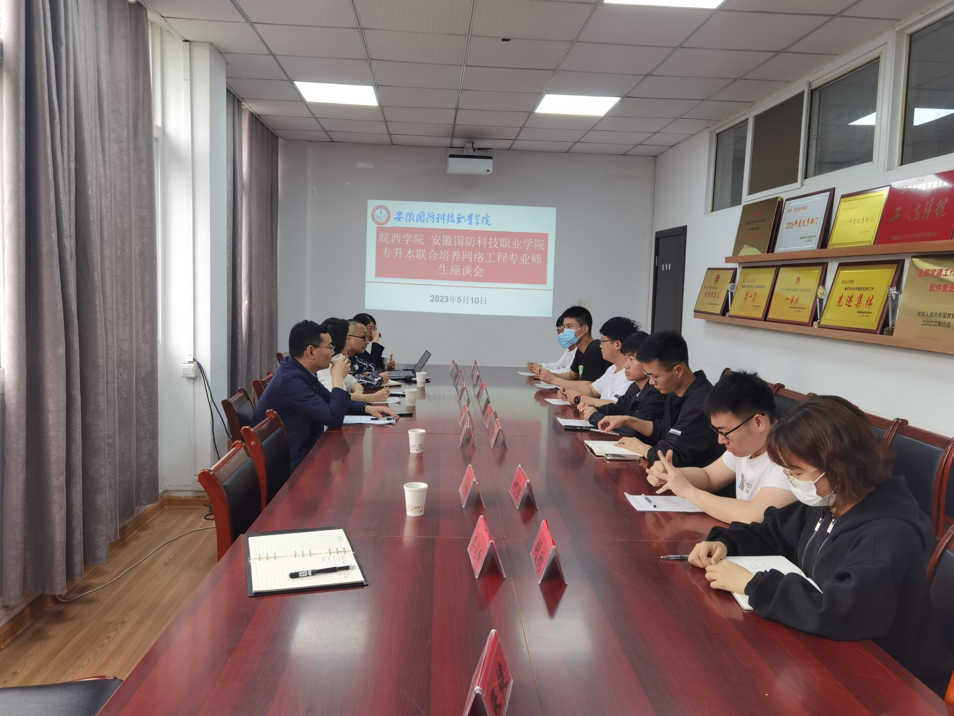本网讯(信息技术学院 李剑峰)为进一步了解专升本联合培养专业学生对学院教育教学、学生管理服务等方面的意见,增强学院教学管理服务工作,提高学生管理工作的针对性和实效性。5月10日下午,信息技术学院邀请皖西学院电子与信息工程副院长郁书好一行参加专升本联合培养网络工程专业师生座谈会。会议由郁书好主持。