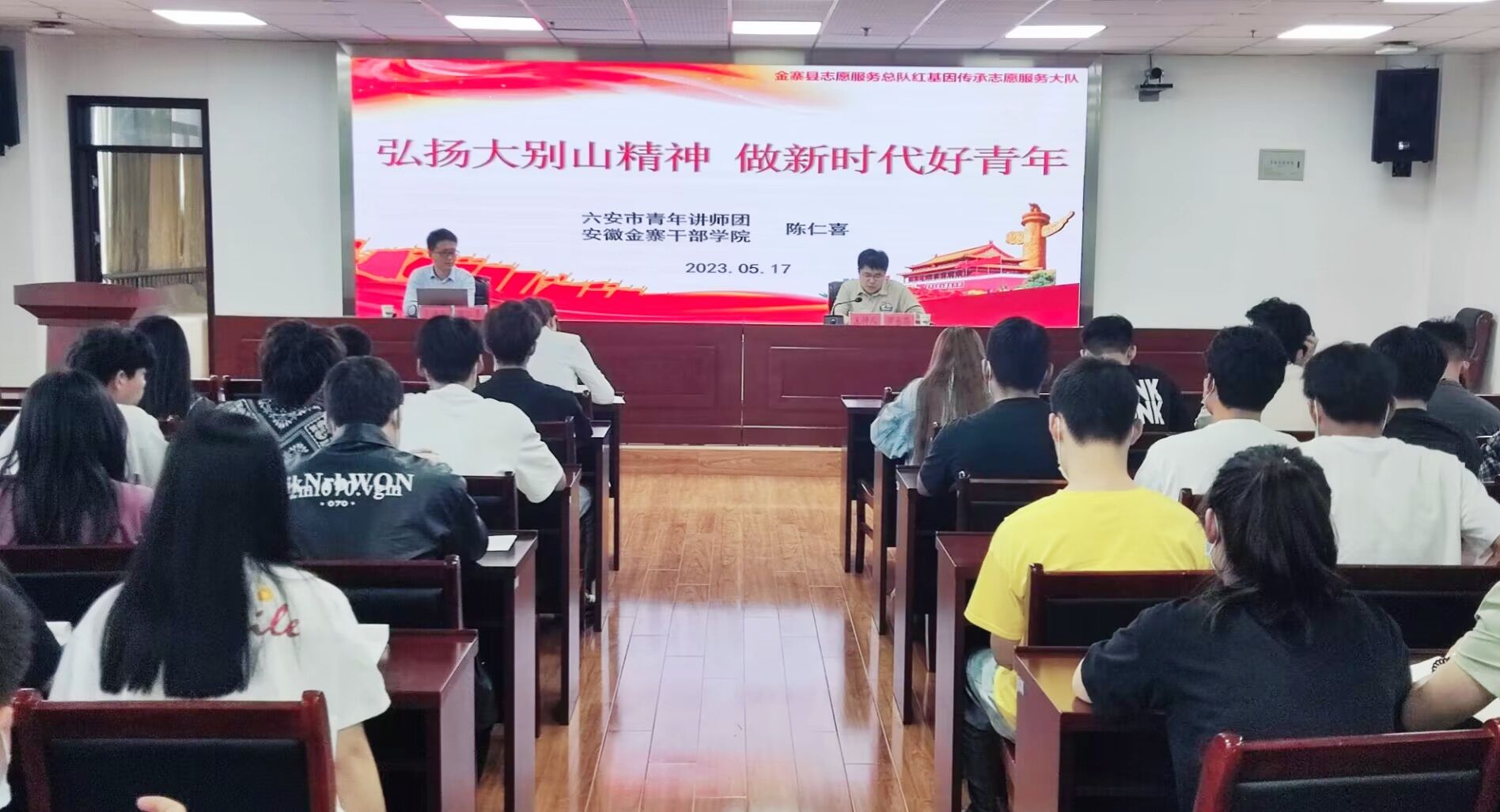 本网讯(校团委 罗丞筠)为深入学习宣传贯彻党的二十大精神,引领学生骨干传承红色基因,赓续红色血脉。5月17日下午,安徽金寨干部学院红研室副主任、六安市青年讲师团成员陈仁喜老师受邀作题为《弘扬大别山精神 做新时代好青年》的报告。报告会由素质拓展中心主任罗丞筠主持,校院专兼职团干部、149名青马学员全程听讲。