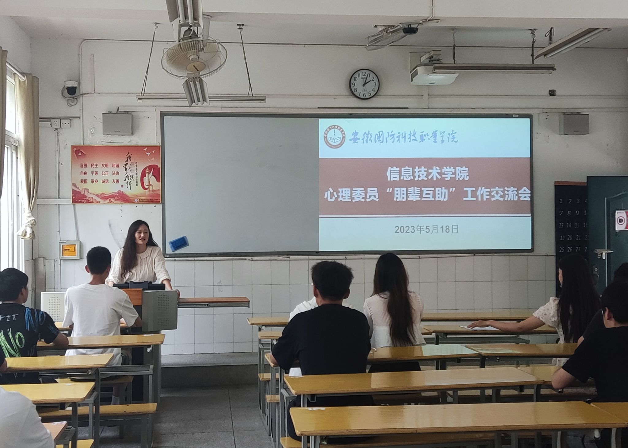 本网讯(信息技术学院 马士君)为充分发挥心理委员朋辈心理互助的作用,进一步增强心理委员间的交流与学习,以更好地开展班级心理健康工作, 5月18日下午,信息技术学院召开了心理委员“朋辈互助”工作交流会。21、22级共43个班级的心理委员参加了会议,会议由学院心理辅导员马士君老师主持。