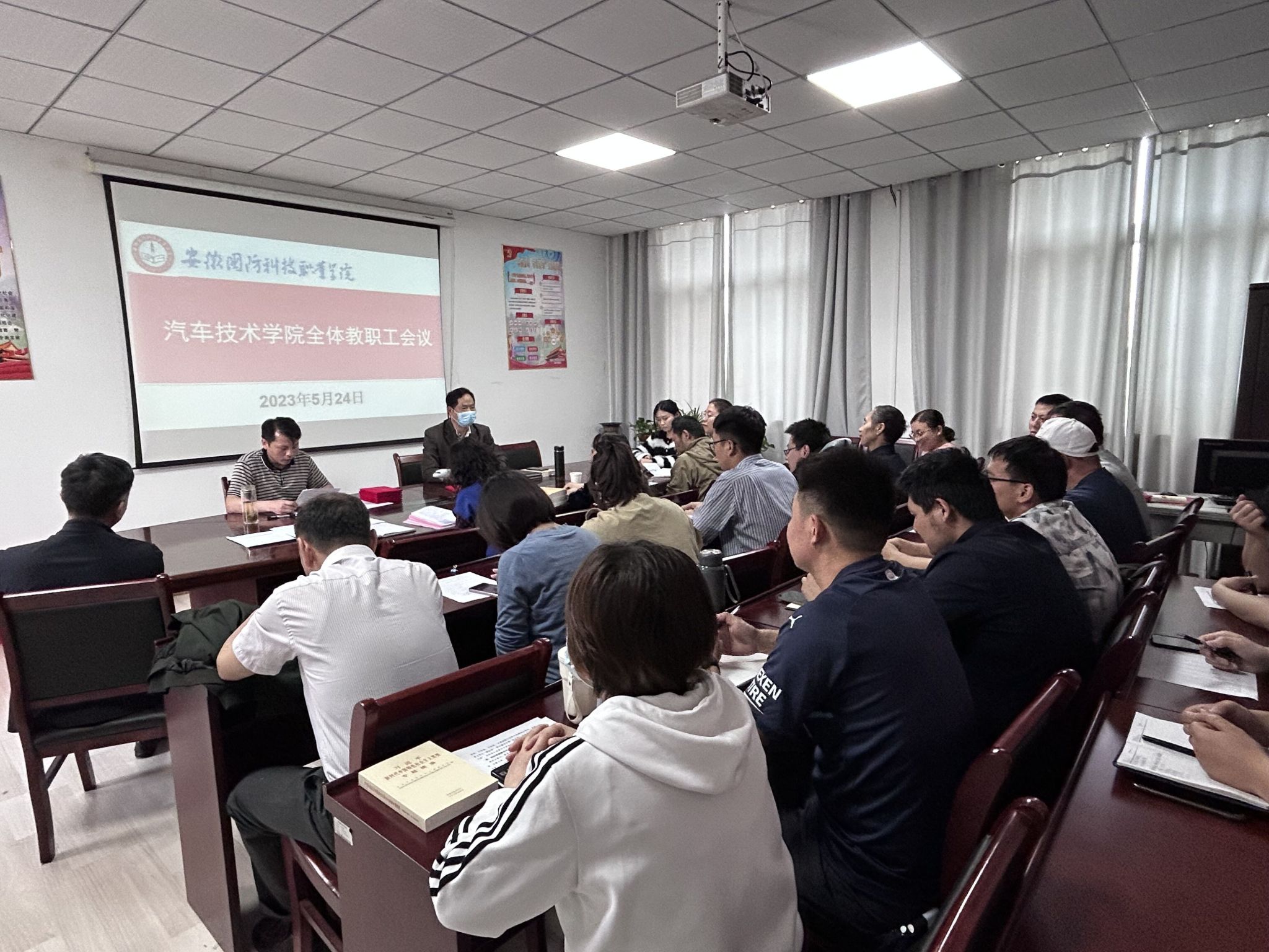 本网讯 为深入学习贯彻习近平新时代中国特色社会主义思想和党的二十大精神,积极落实学校及学院相关决策部署,5月24日下午,汽车技术学院召开全体教职工会议,传达学习有关文件精神,部署近期重点工作。学院党总支书记、院长孙良平主持会议。