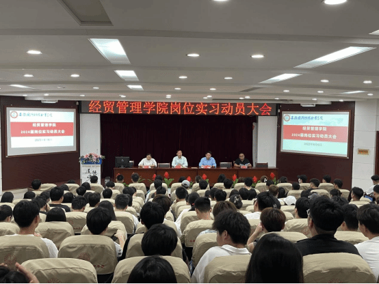 本网讯(经贸管理学院 杨孝景)为贯彻落实学校相关文件精神和要求,全力做好学院2024届学生岗位实习工作,6月6日晚,经贸管理学院在图书馆报告厅召开2024届相关专业学生岗位实习动员大会。学院党总支书记刘峰、院长杨力、副院长杨学分及各班主任和2024届相关专业学生参加,会议由学院办公室主任付玉梅主持。