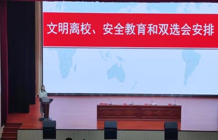 会上,杨庆颖就文明离校、安全教育和双选会安排等工作进行了安排部署。要求同学们认真准备,积极参加校院双选会,尽快落实实习单位,在离校前提交各项材料。并强调,同学们要文明离校,不破坏公共秩序、不违反校纪校规、不损坏公物、不酗酒滋事,注重离校及顶岗实习期间的人身、财产、防溺水、防电信诈骗等各类安全问题。