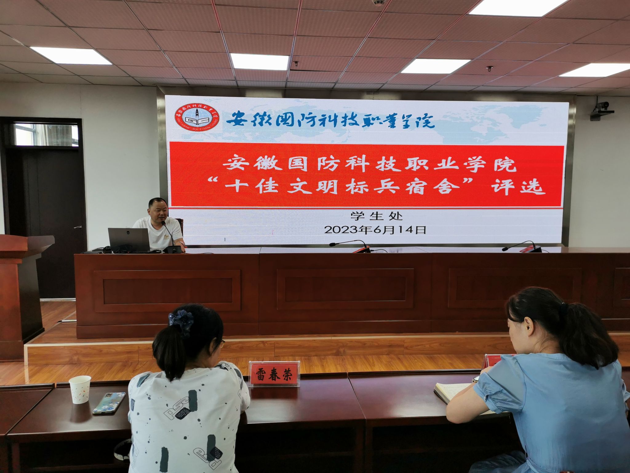 本网讯(学生处 刘秦珂)6月14日下午,学生处在秉心楼12楼报告厅组织举办学校十佳文明标兵宿舍评选活动。学生处副处长张志鸿、校团委副书记张凤、总务处卫生科科长雷春荣、学生处宿管科刘秦珂参加活动并担任评委。参选十佳文明标兵宿舍成员和各二级学院师生代表参加了活动。