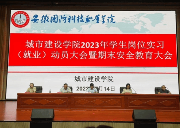 本网讯(城市建设学院 袁小永)为做好2023年学生岗位实习工作,近日,城市建设学院在学校产教融合中心报告大厅召开了2023年岗位实习(就业)动员大会暨期末安全教育和文明离校大会,城市建设学院党总支书记张宗江、院长王红林、副院长左飞、组织员胡仕婷、辅导员、岗位实习指导教师及全体2024届毕业班班主任、毕业生参与会议,会议由副院长左飞主持。