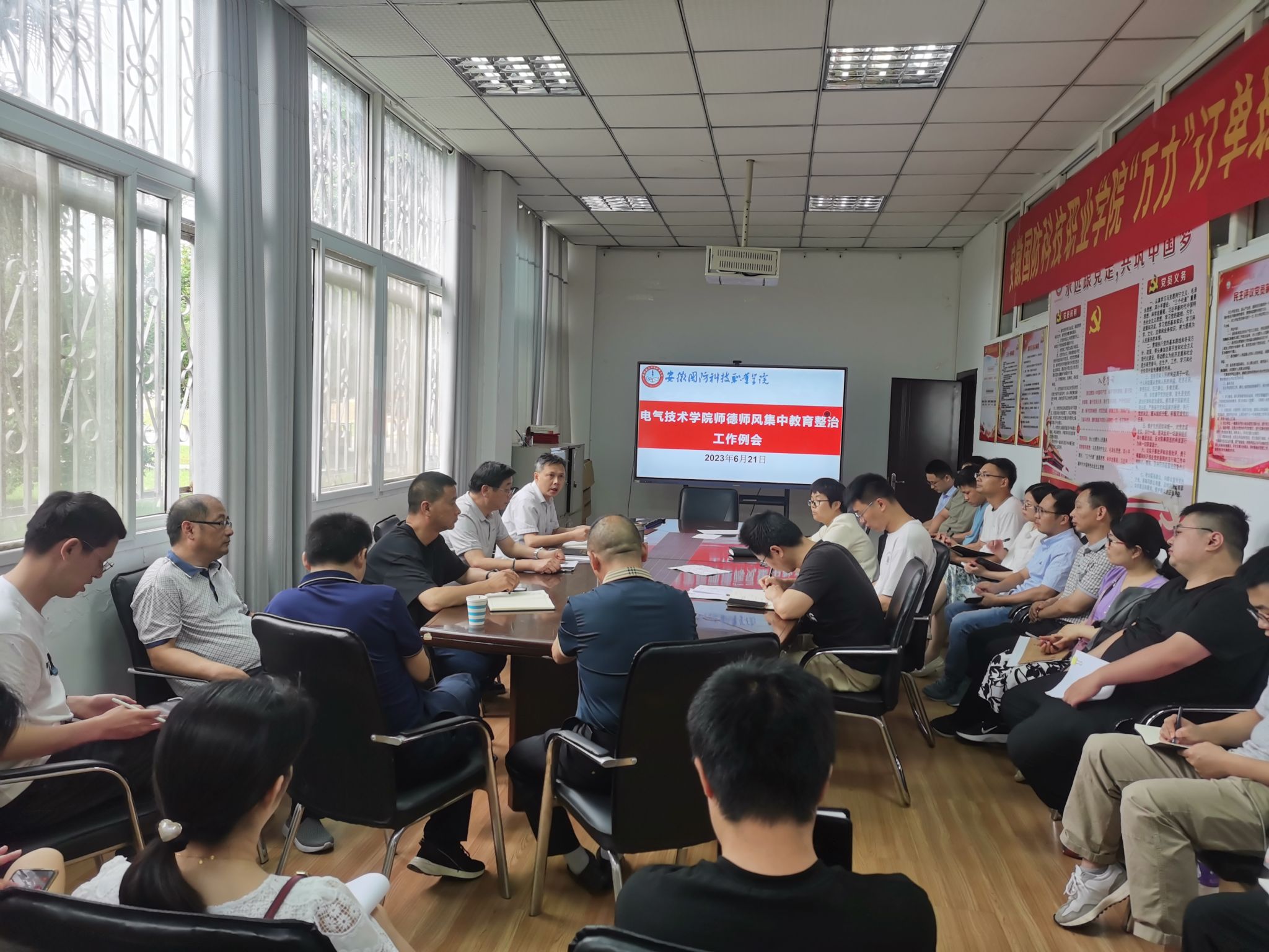 本网讯(电气技术学院 程坤) 为进一步加强电气技术学院师德师风建设,提升教育质量,电气技术学院于6月21日在学院会议室组织召开师德师风集中教育整治工作会议。会议由电气技术学院党总支书记叶启衡主持,电气技术学院全体教职工参加会议。