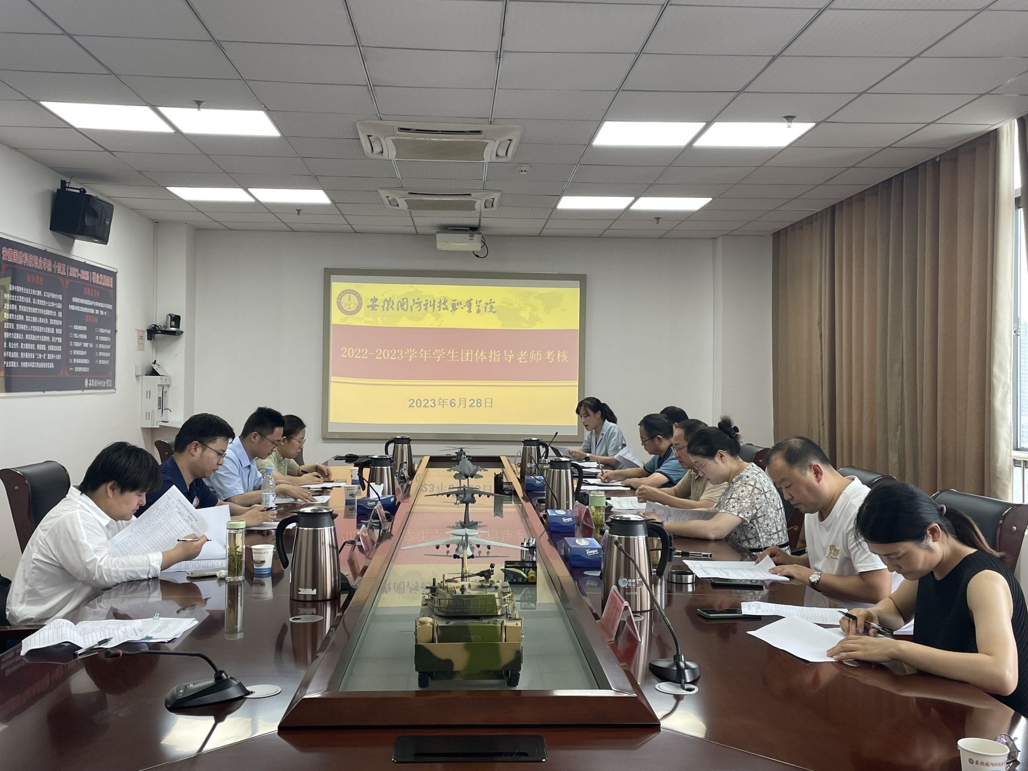 本网讯(校团委 罗丞筠)为加强学生社团指导老师的管理,切实发挥指导老师在学生社团建设与校园文化建设中的重要作用,树立学生社团指导教师优秀典型,6月28日下午,2022-2023学年学生社团指导老师考核会在秉心楼第一会议室举行。本次考核采用“现场汇报+书面汇报”的形式,会上,8位学生社团指导老师对学生社团整体发展情况进行现场述职。校党委副书记冯伦久,校党委委员、宣传部部长陈思,校学生社团建设管理评议委员会成员以及学生社团业务指导单位负责人作为评委参加了本次考核会。