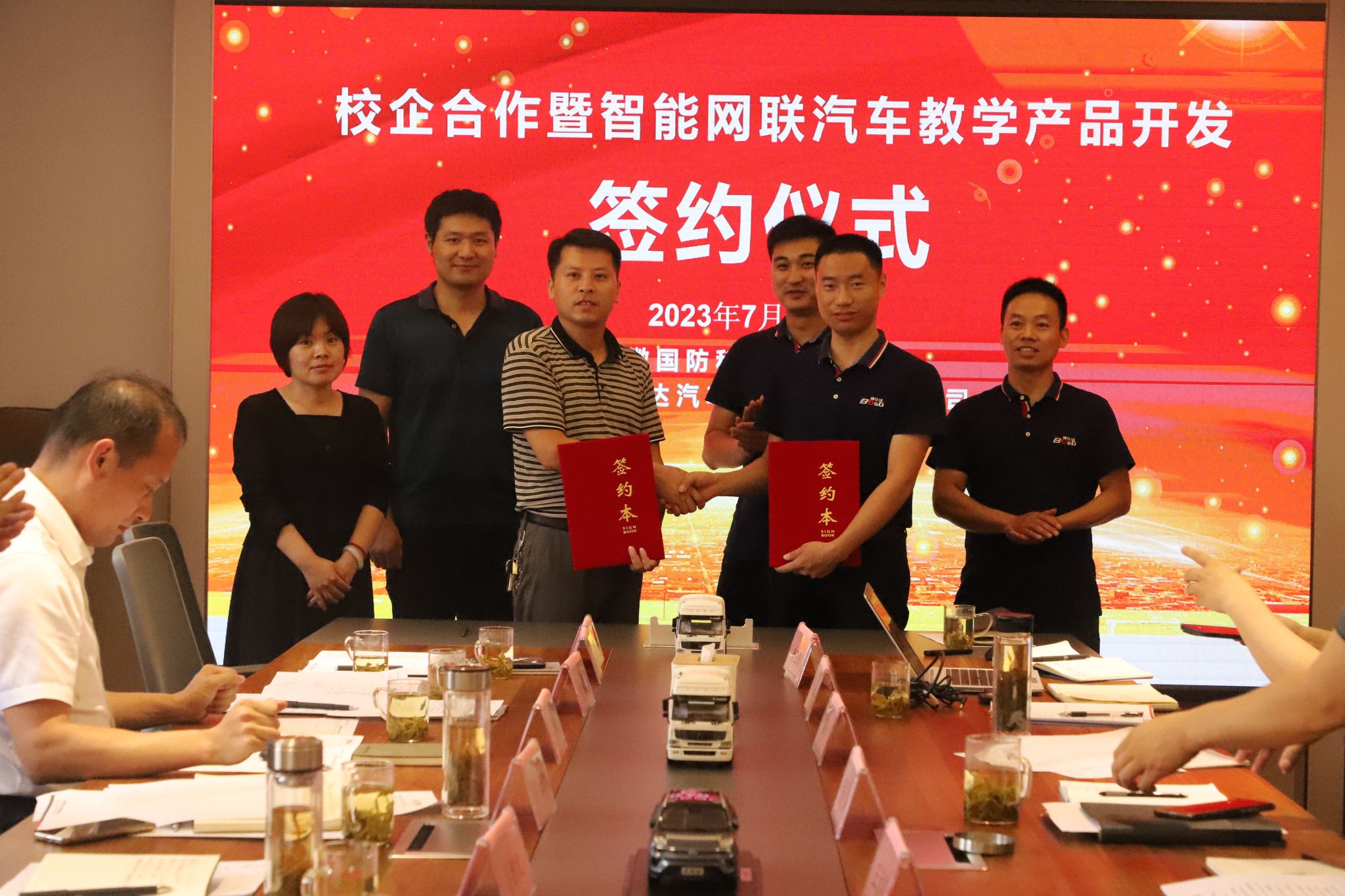 在随后的交流座谈环节,与会人员就校企合作的具体问题、相关细节进行了深入交流。双方就智能网联汽车教学产品开发横向课题、课程资源、校企联合教材开发相关合作事项签订了合作协议。
