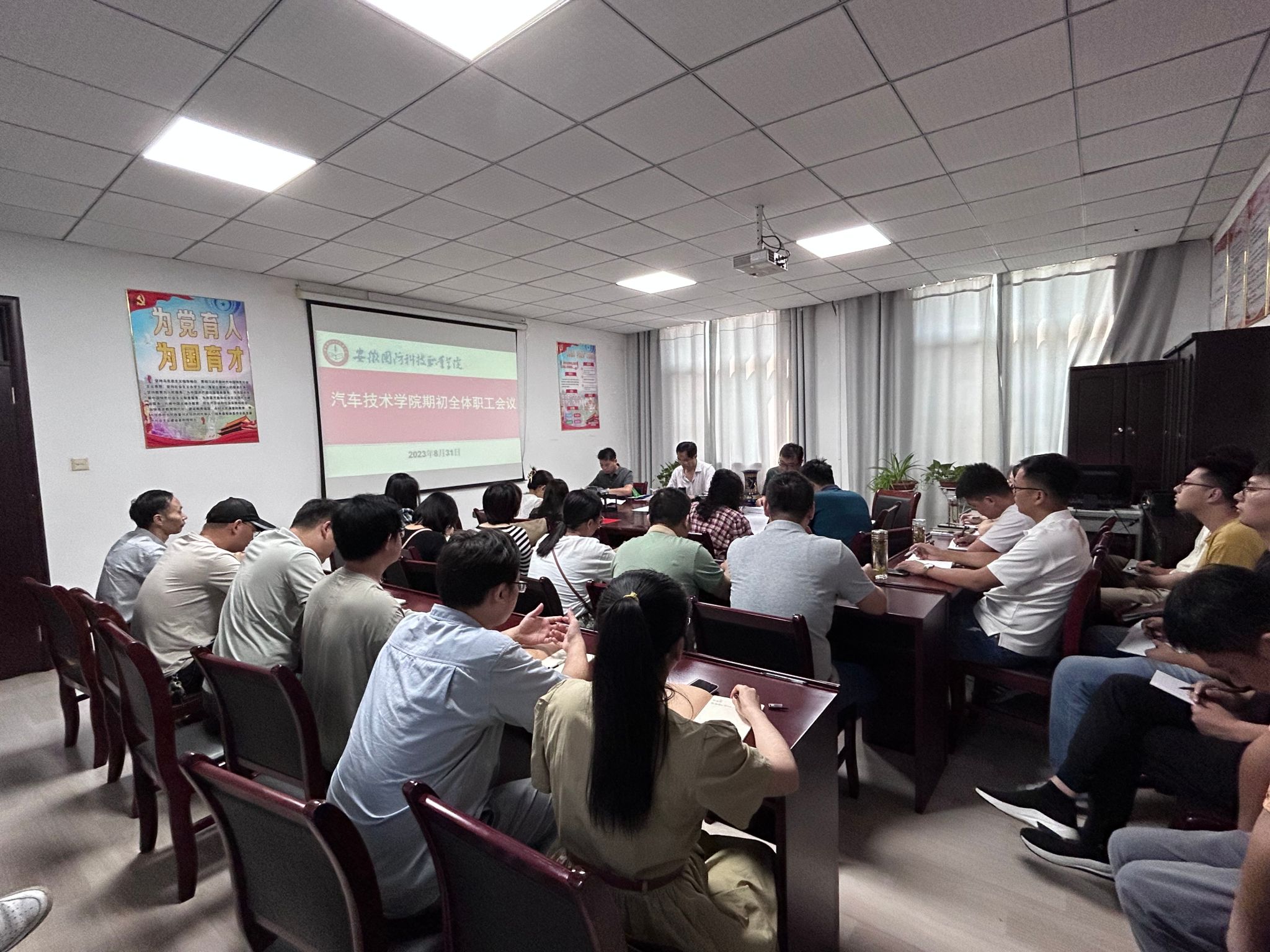 本网讯 为进一步贯彻落实上级有关决策部署,提振精神,凝心聚力,以新气象迎接新学期工作,8月31日上午,汽车技术学院组织召开新学期第一次全体职工会议,总结上半年工作成果,积极谋划新学期重点工作。会议由党总支副书记余桂刚主持,全体职工参加会议。