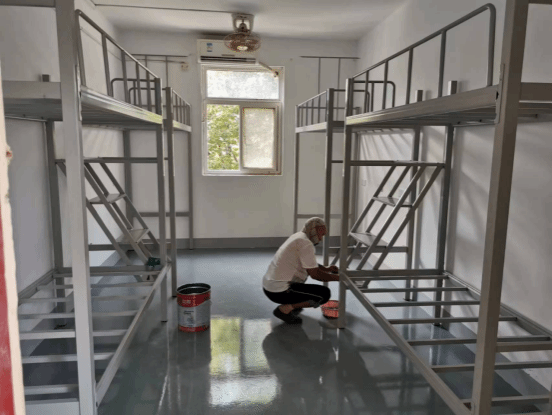 此次2栋宿舍楼提质改造工作涉及宿舍136间,维修项目包括墙壁刷新、地面自流平、床铺和床柜更换、电力敷设、增设晾衣架等多个项目,时间紧,工作量大,为确保提质改造工作按质、按期顺利完成,总务处早谋划,早安排,制定了切实可行的宿舍提质改造建设方案。学生工作处和各学院积极配合,制定了详细的宿舍物品搬迁工作计划,井然有序地开展搬迁工作,为提质改造工作打好了坚实的基础。