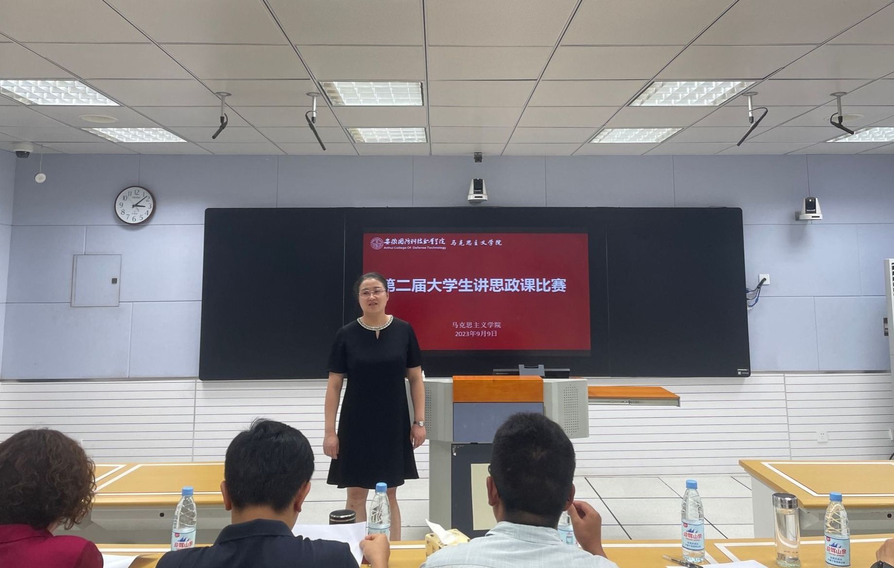 本网讯(马克思主义学院 武晓璐)为深入学习贯彻落实习近平新时代中国特色社会主义思想和习近平总书记关于深化思政课改革创新的重要指示精神,大力推动教学相长、师生共进,形成良好思政课教学氛围,更好地推进习近平新时代中国特色社会主义思想进教材、进课堂、进头脑,引导广大青年学生热爱思政课、学好思政课。9月9日下午,马克思主义学院在2教306教室举办大学生讲思政课比赛,比赛由校党委委员、宣传部部长、马克思主义学院院长陈思主持,邀请了六安职业技术学院思政部副主任袁文刚作为校外专家评委,与马克思主义学院教师评委组成了赛事评委组。
