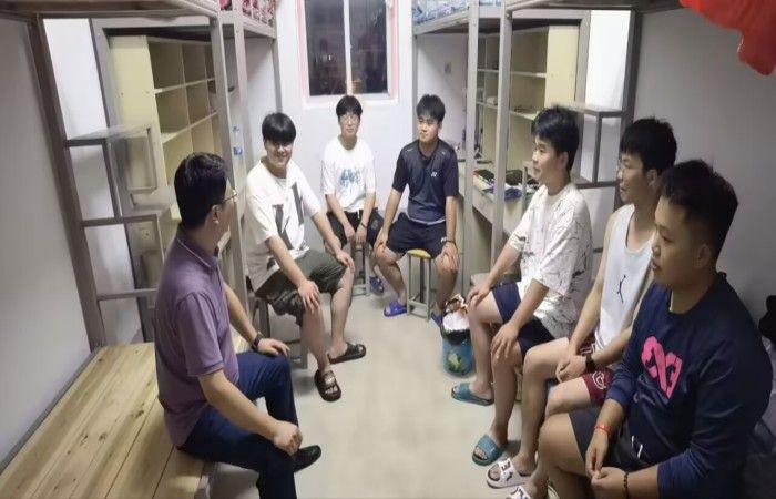信息技术学院党总支书记王胜在宿舍与新生亲切交谈