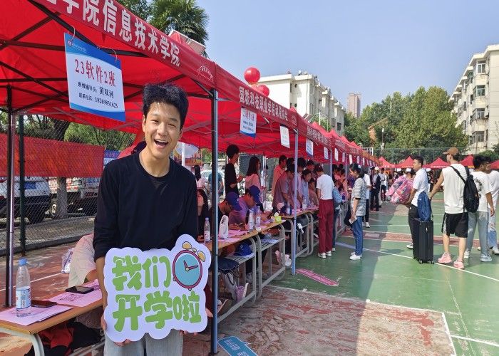 信息技术学院精心设置迎新点,用别具特色的校园文化、专业介绍和“照片墙”打卡等满满的仪式感帮助新生尽快融入校园生活。