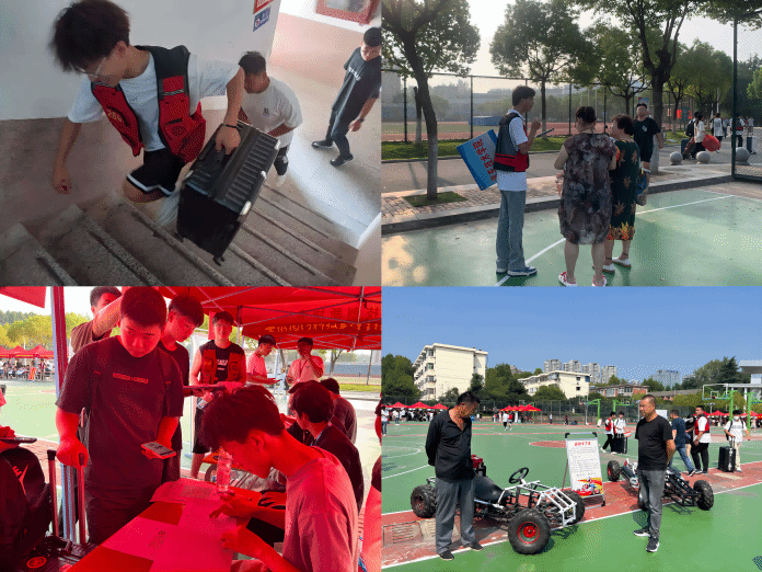 用心服务,传递温暖。迎新现场,高举汽车技术学院指示牌的志愿者热情洋溢地为新生指引方向、提供问询服务;身穿红马甲的志愿者用有力的双手接过新生的行李,报到处志愿者有条不紊地登记新生信息、分配寝室钥匙,报道流程便捷高效;专业咨询处老师热心、耐心解答家长及学生的专业问题。学院在报到处还准备了汽车科技创新协会学生在专业老师指导下自主设计、组装的运动卡丁车,引得现场学生和家长纷纷驻足观看、询问。