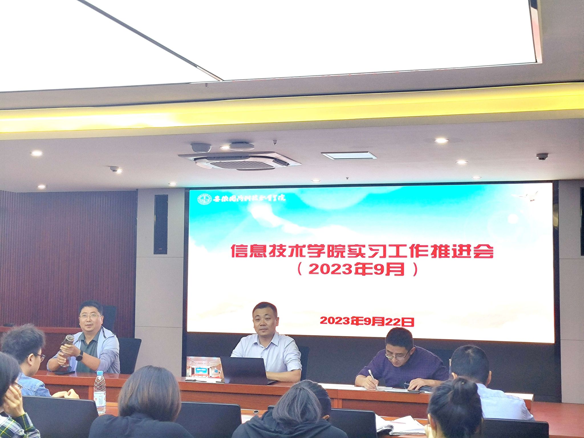 本网讯(信息技术学院 谢宇) 为进一步掌握学生岗位实习状况,落实落细实习管理工作,信息技术学院于9月22日在第二报告厅召开岗位实习工作推进会。校党委委员、信息技术学院院长沙有闯,学院党总支书记王胜,全体实习指导教师参会,会议由副院长雷惊鹏主持。