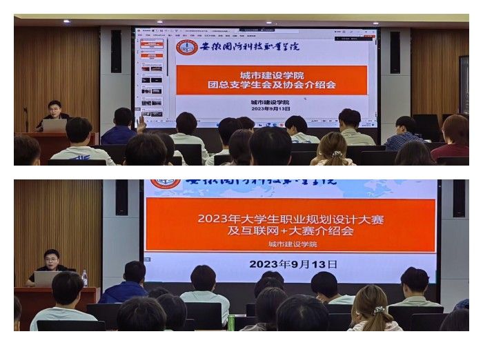 9月13日晚,城市建设学院团总支书记袁野为新生介绍团总支学生会和协会,号召大家在学习之余积极参加学院举办的“筑金大舞台”等特色活动。各位新生入学后要做好学习规划,树立职业发展理念,培养创新意识,积极参加大学生职业生涯规划大赛和“互联网+”创新创业大赛。