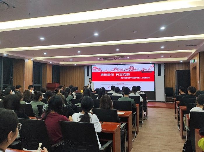 9月12日晚,城市建设学院党总支副书记叶高洁从“时代的号角在响动”和“担当时代重任,建功立业新时代”两个方面为新生开展入党教育活动。叶高洁用漫画短片给大家生动地介绍了中国共产党的光辉历程和入党流程,并嘱咐广大青年学生,要听党话、跟党走,坚定理想信念,努力学习,报效祖国。