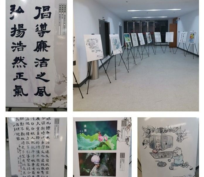 活动开始前,宣教单位在报告厅门口举办清廉文化书画展,以艺术化的风趣、幽默形式展示并倡导廉洁之风。书画展从清廉文化、反洗钱和清廉故事三个方面来传递清廉金融理念,告诫师生们在从业道路上要廉洁自律,要熟知“反洗钱”知识,学会防范洗钱活动。