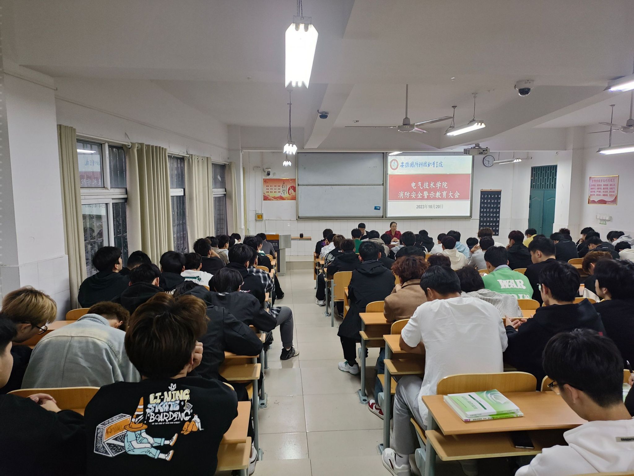 加大教育宣传力度,牢固树立红线意识。10月9日,电气技术学院组织辅导员、班主任召开宿舍消防安全工作会议,针对宿舍消防安全工作,要求辅导员、班主任采用多种形式加大宿舍消防安全宣传力度;10月20日,电气技术学院针对重点宿舍、重点人群召开消防安全教育警示大会,教育动员学生重视宿舍消防安全,细化宿舍安全标准,明晰整改要求,强调严禁事项及管理规定,树牢红线意识、风险意识。