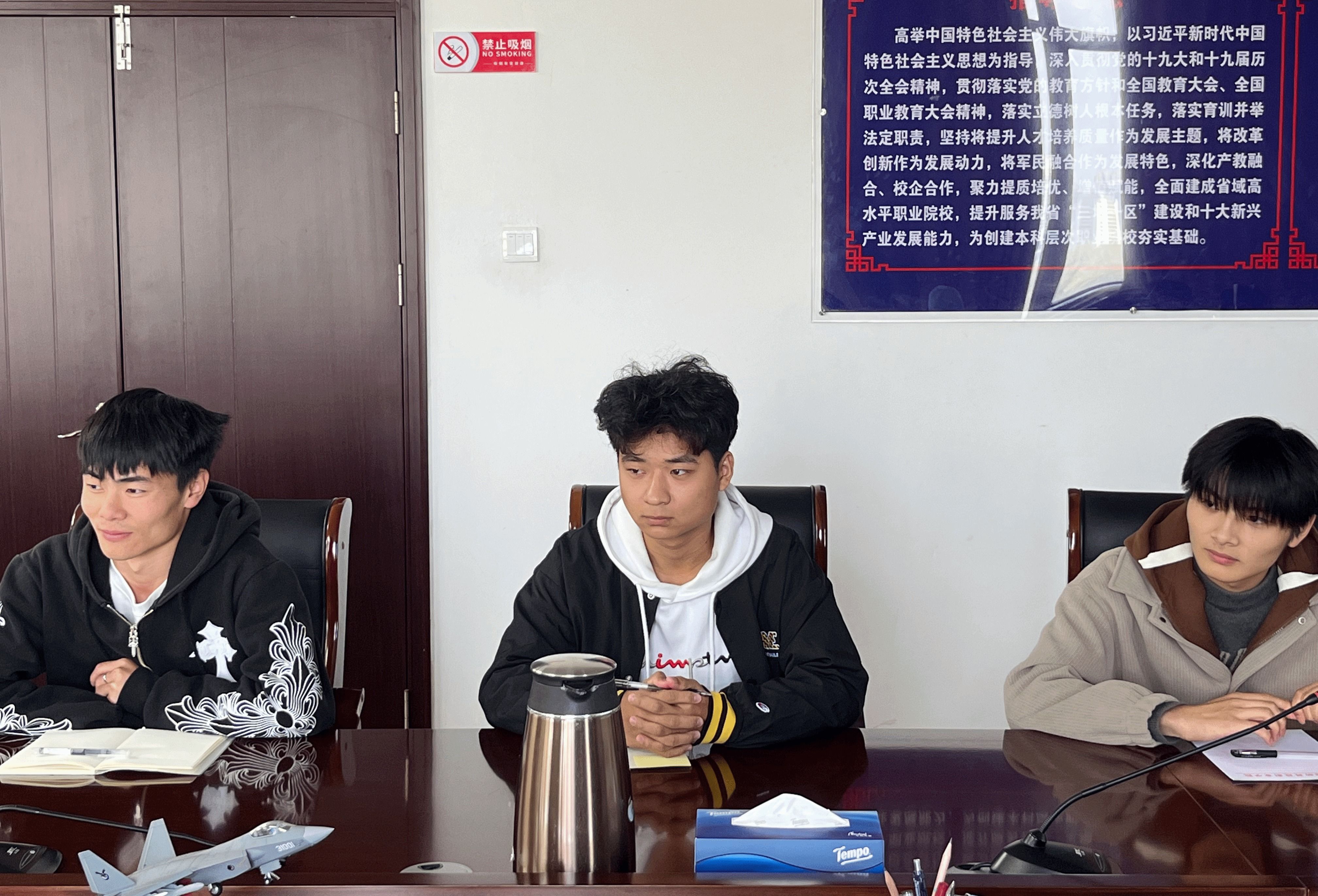 陈思对与会学生提出的宝贵意见和建议表达了感谢,并表示每一个意见都反映了学生的诉求和心声,会后学院将逐一梳理、认真总结,及时将同学们的意见反馈给各位老师,督促各位老师不断改进教学上的不足。并对学生代表们提出以下要求:一要积极发挥好带头作用,积极担当作为。二要树立严格的安全意识,筑牢安全防线。三要辩证地看待“大”与“小”、“上”与“下”、“忙”与“闲”的关系,要在小平台上练就本领,为大舞台做铺垫,并且要保持向上进取心,脚踏实地向下扎根,早日成长为有理想、敢担当、能吃苦、肯奋斗的新时代好青年。