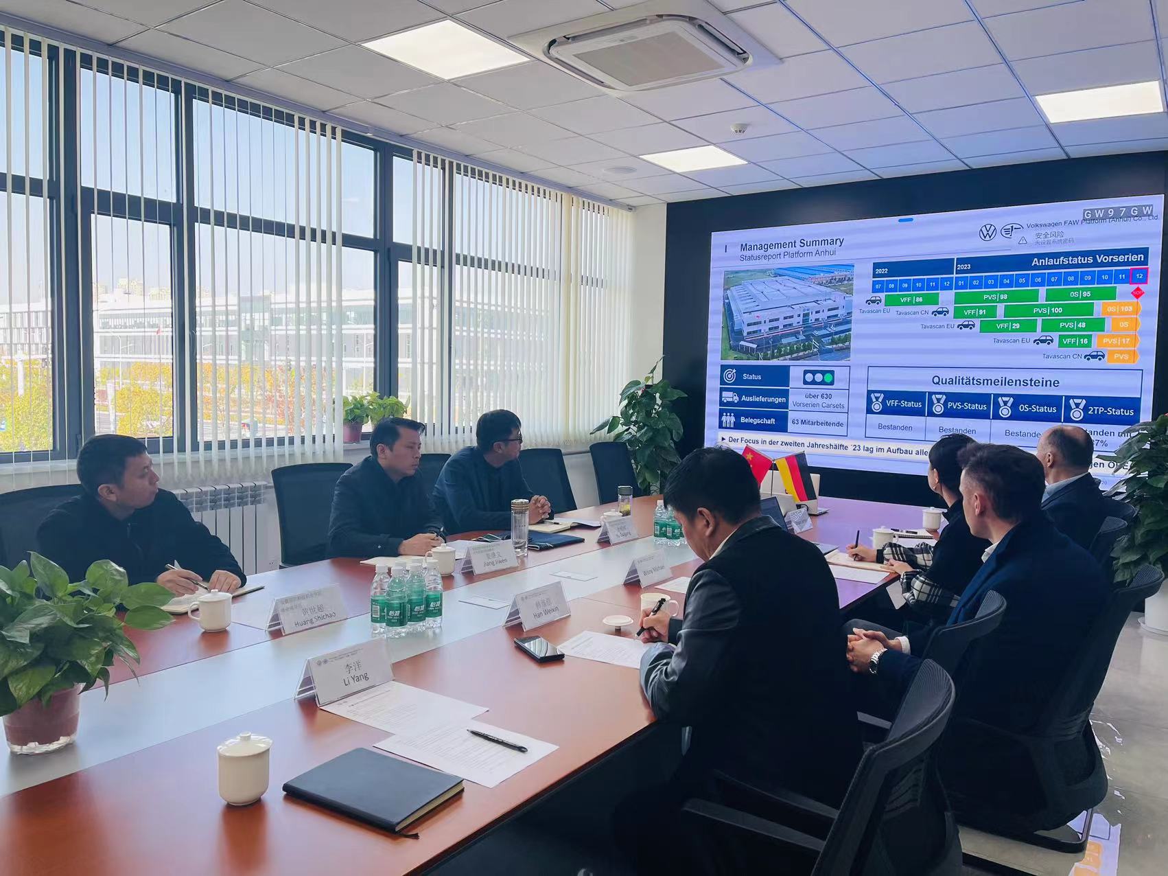 调研座谈会上,大众一汽平台零部件(安徽)有限公司厂长Wisny Michale、副厂长韩维信对余桂刚、姜继文等一行表示热烈欢迎。Wisny Michale详细介绍了大众一汽平台零部件有限公司当前生产状况。韩维信详细介绍了用人需求、人才培养机制和员工生活福利状况,表达了校企深度合作的工作愿景等。