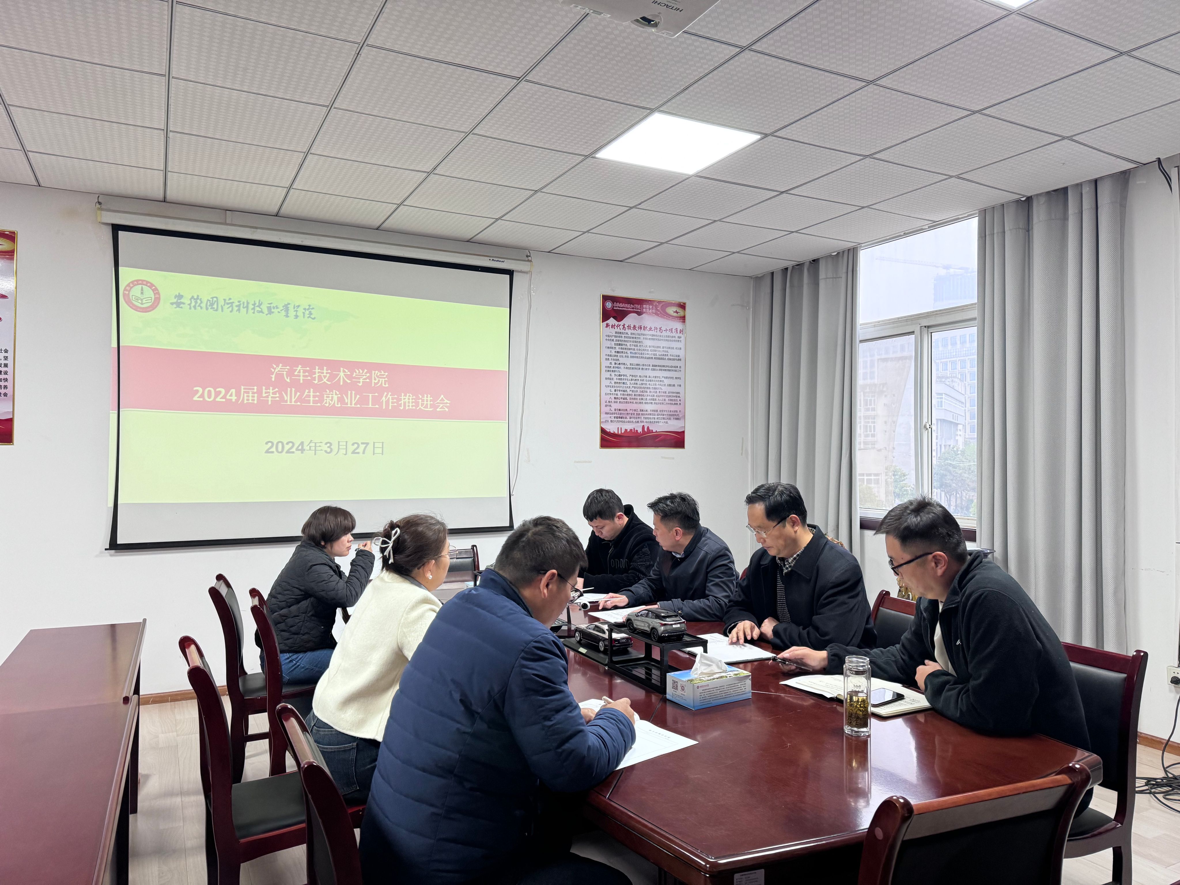 本网讯 为贯彻落实党的二十大精神,落实党中央、国务院“稳就业、保就业”决策部署,做好学院就业工作整体筹划,推进2024届毕业生就业工作再上新台阶,3月27日下午,汽车技术学院召开2024届毕业生就业工作推进会,学院党总支书记孙良平、副院长(主持工作)姜继文、党总支副书记余桂刚、2024届全体辅导员参加了会议,会议由余桂刚主持。
