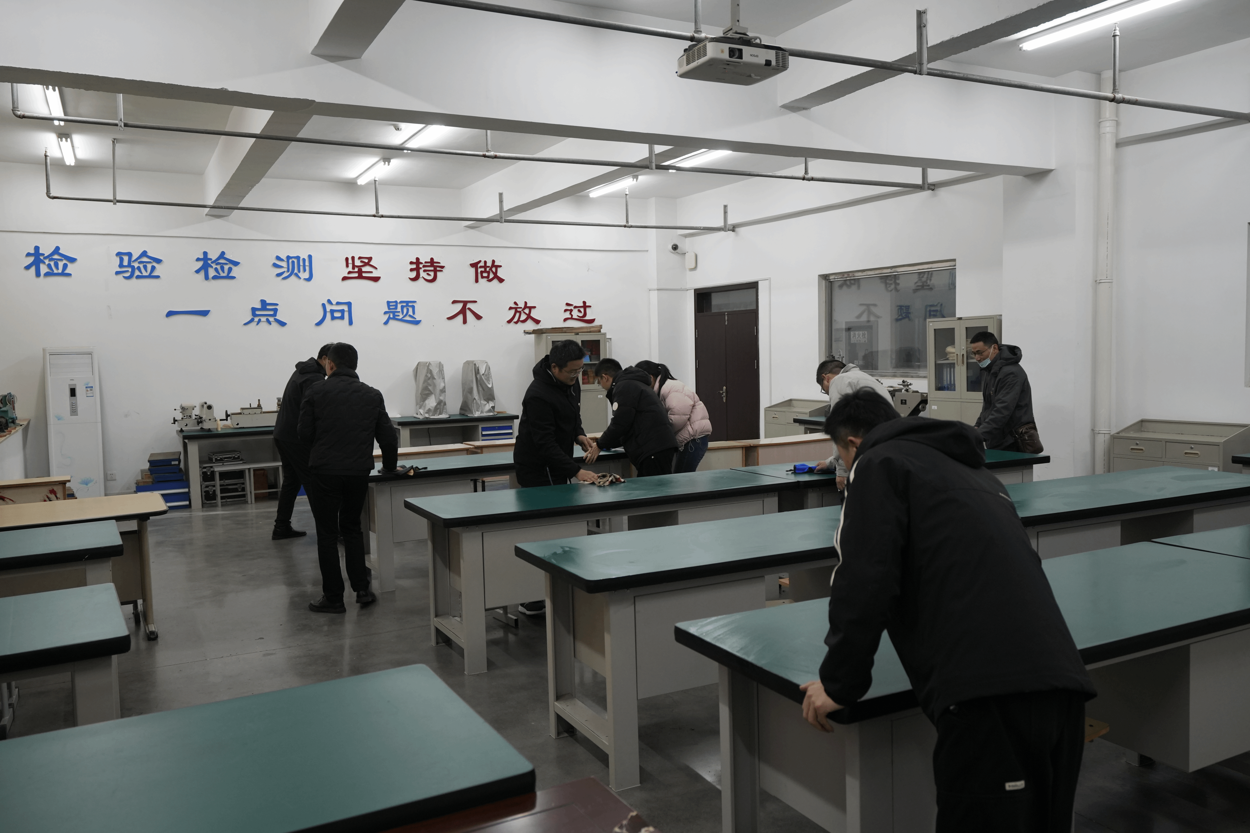 全体党员同志到机械技术学院实训室和马克思主义学院会议室、实验室开展大清扫志愿服务,活动现场,党员同志们手拿抹布认真擦拭实验实训设备、课桌椅等,同时对卫生死角进行了清扫。