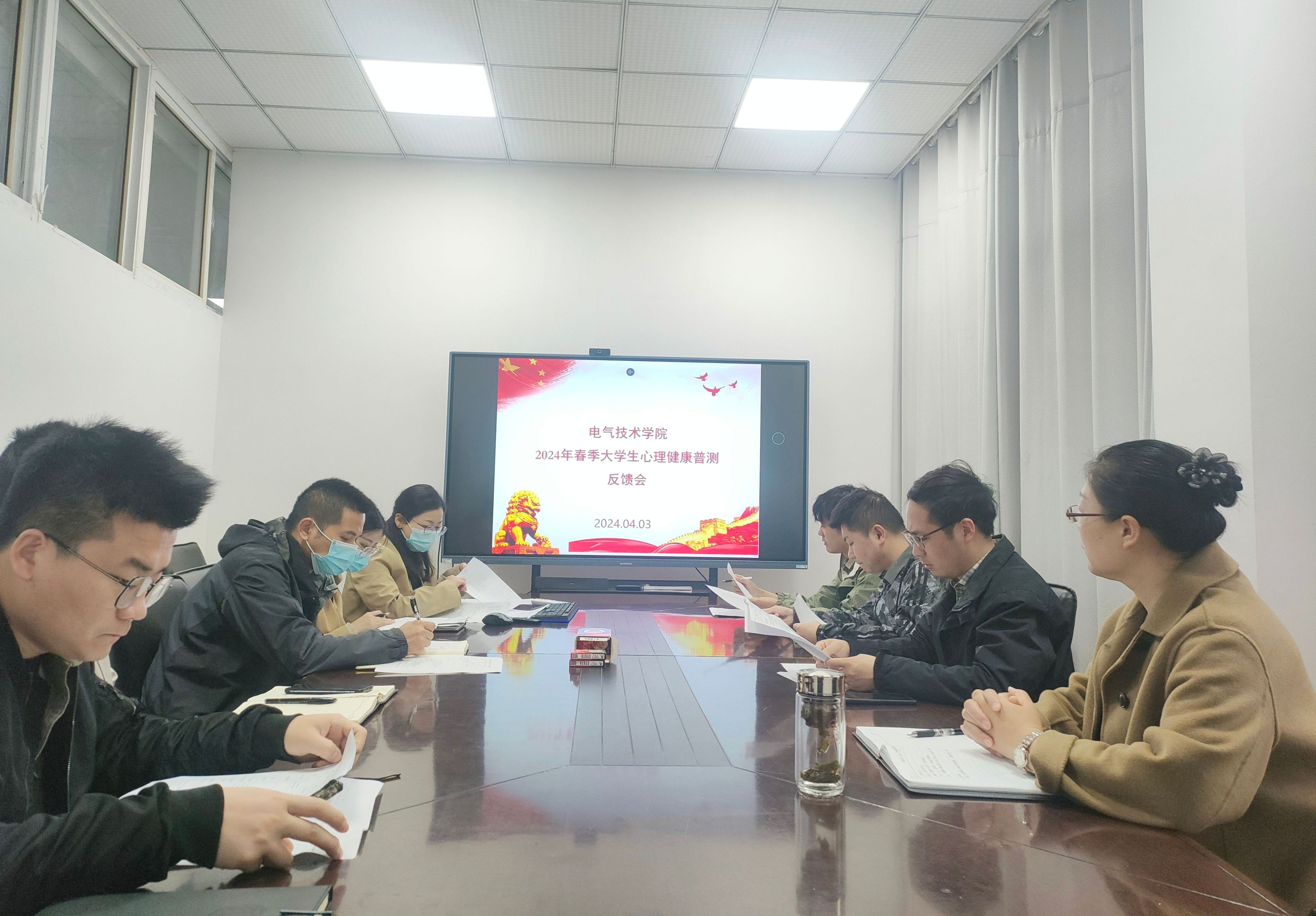 本网讯 为及时了解学生心理健康状况,帮助学生健康成长,4月3日下午,电气技术学院召开2024年春学期大学生心理健康普测反馈会。学院党总支副书记张丽,专兼职辅导员参加此次会议。