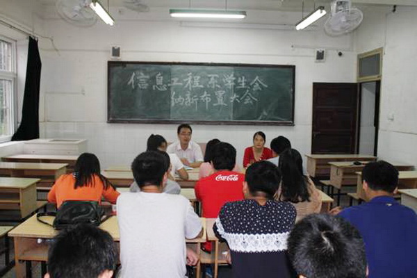 9月11号下午,信息工程系学生会在1栋教学楼106教室召开工作会议,布置纳新工作。系党总支副书记杨旄袤出席会议。会议由系团总支书记杨庆颖主持,系学生会全体学生干部参加了大会。