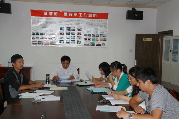 9月11日,思政部就业指导教研室召开教学工作会。思政部主任赵守林和就业指导课全体授课教师参加会议。会议由就业指导教研室主任丁辉主持。