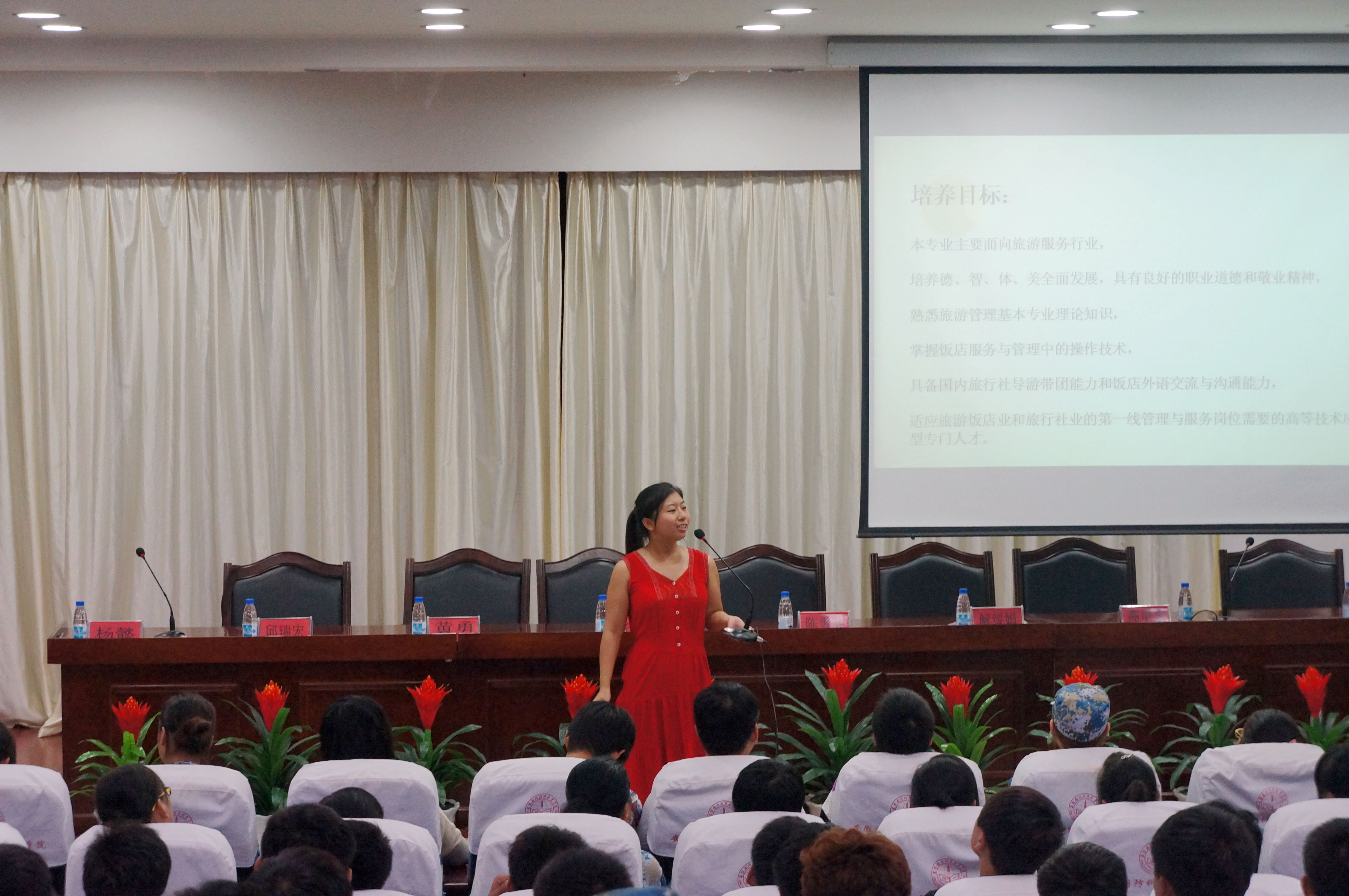 9月13日下午,旅游服务与管理专业在图书馆报告厅举办了新生专业教育讲座。管理工程系主任张显国、副主任刘圣春以及部分校企合作单位高管出席了会议。旅游服务与管理专业教师和2013级旅游专业新生参加了讲座。讲座由储成芳主持。