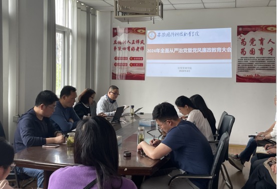 本网讯(经贸管理学院 付玉梅)4月24日下午,经贸管理学院召开2024年度全面从严治党暨党风廉政建设教育会,学院全体党员参会,会议由学院党总支书记刘峰主持。