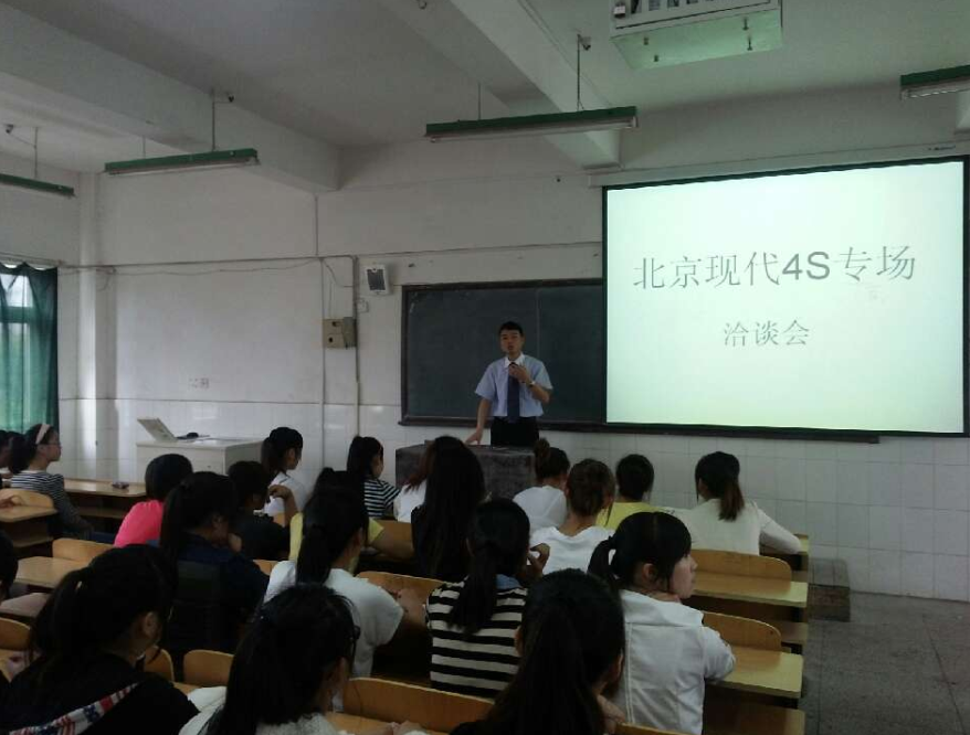 北京现代4S汇添店销售经理、售后经理分别就公司概括、薪酬福利待遇、发展培养前景、专业需求及培养流程进行了详细的介绍。