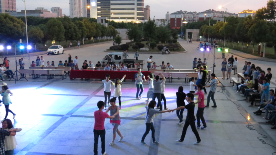 为建设丰富多彩的校园文化生活,展现大学生乐观积极的青春风貌,5月11日晚,由舞蹈协会指导老师孙武牵头,院团体联合会舞蹈协会主办的首届大学生自由舞会在图书馆门前广场盛大开幕。