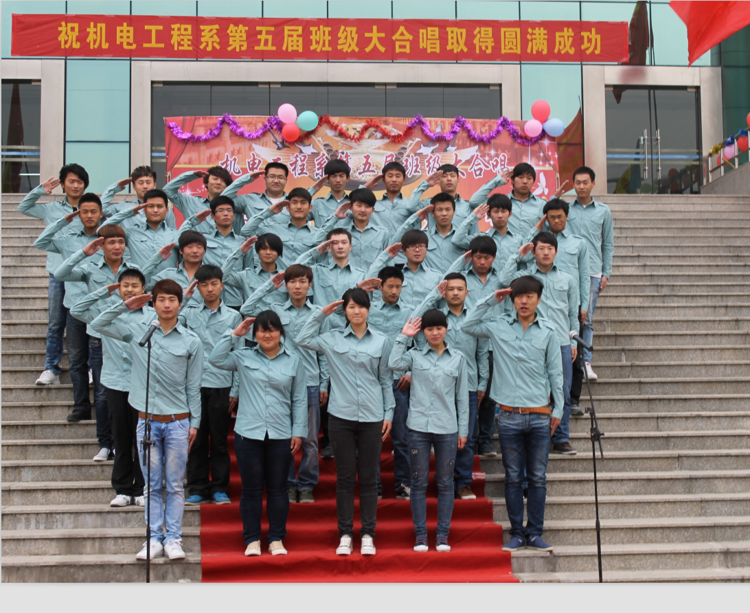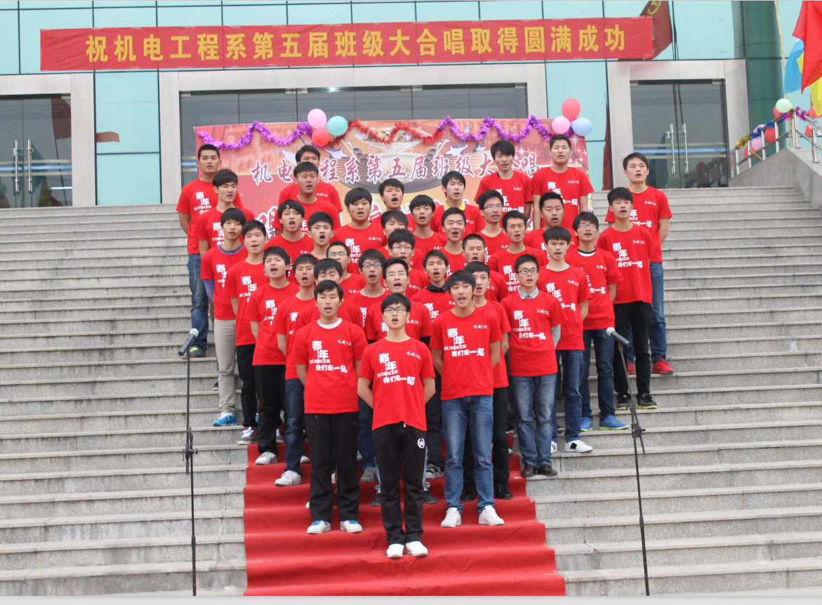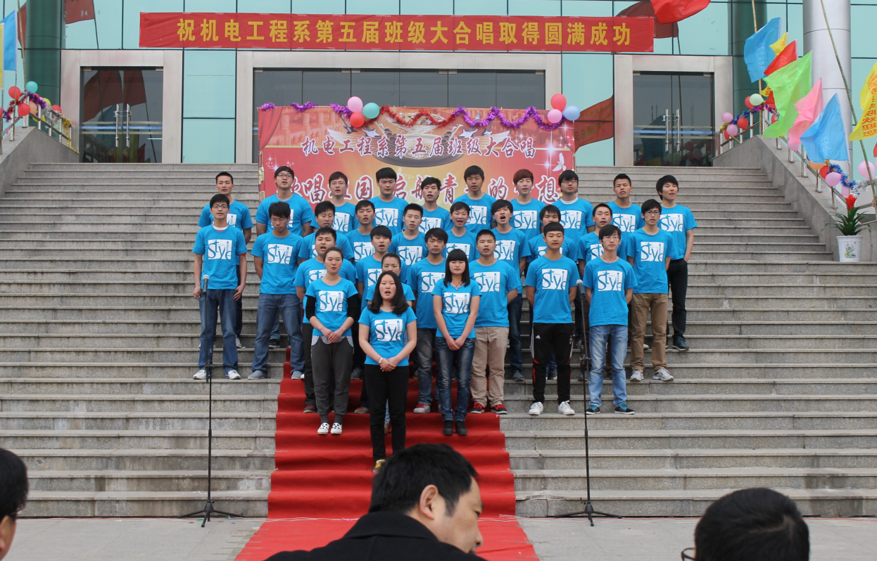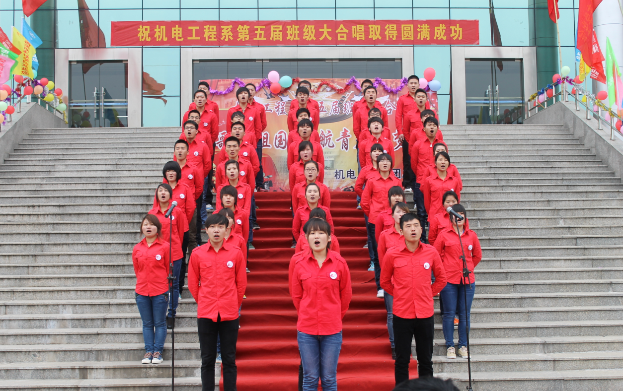 为迎接第53个“五四”青年节的到来,丰富校园文化生活,增强学生的爱国热情、增强的团队精神。4月20日下午,机电工程系在学院图书馆前隆重举办“歌唱祖国 启航青春的梦想”第五届班级大合唱比赛。