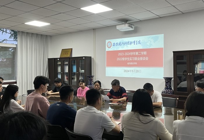 本网讯(城市建设学院 王俊)5月20日晚,城市建设学院党总支书记张宗江主持召开实习就业座谈会,2022级各班学生代表参会。