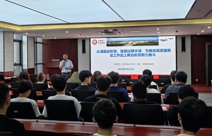 张宗江分析了当下严峻的就业形势,指出了大学生对就业的模糊认识,梳理了就业基本程序,针对就业过程中的常见问题和签订就业协议的注意事项进行了详细解读。张宗江强调,学院始终把毕业生就业工作作为重中之重、摆在更加突出的位置,纳入领导班子重要议事日程,制定就业工作方案,分级落实工作责任,调动全院力量形成全员促就业工作合力。
