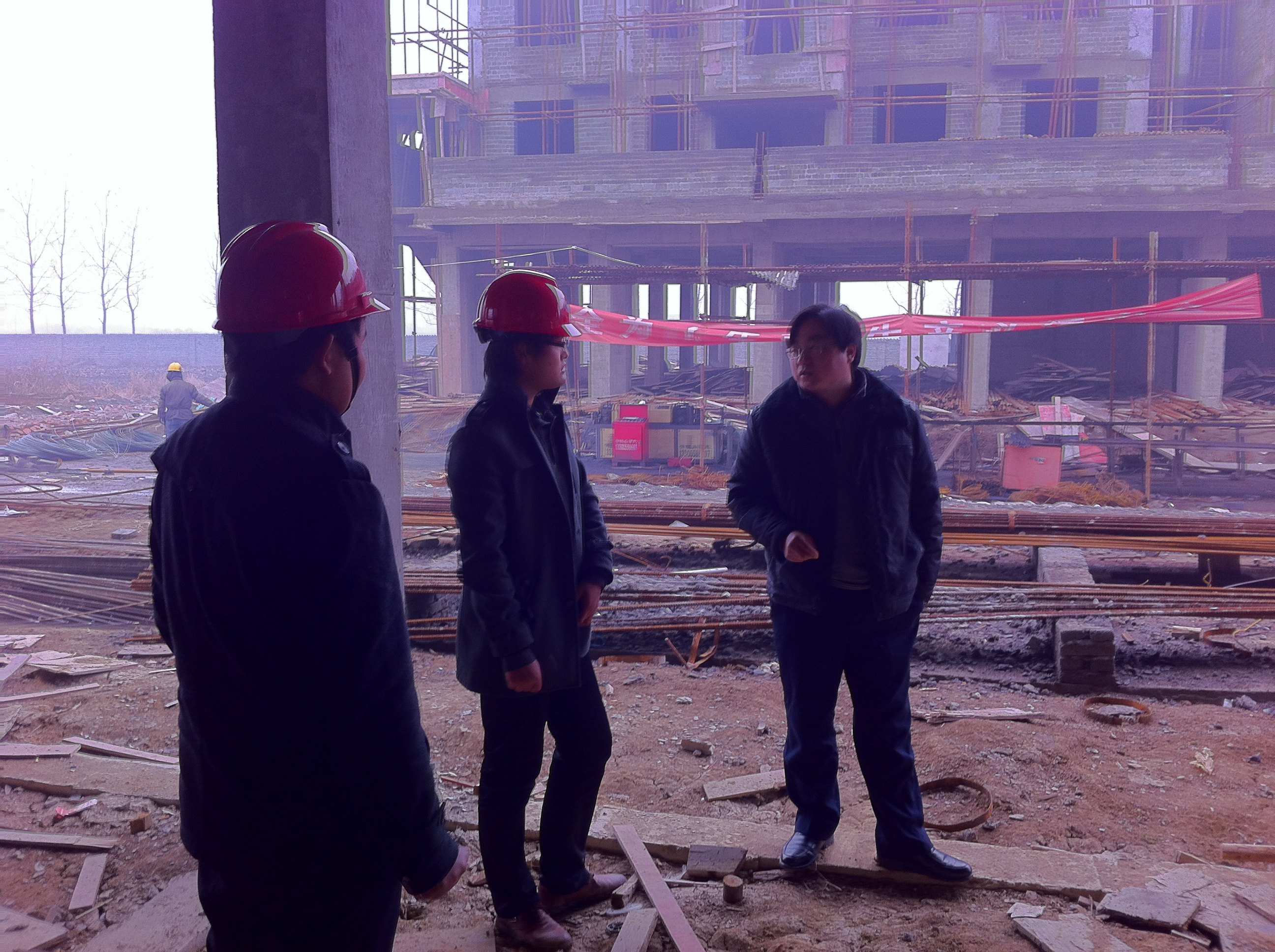 调研老师在企业人员带领下深入工地,实地调研该系毕业生工作情况,并看望在此进行定岗实习的10级建筑工程管理张新德、王强等同学。了解顶岗实习学生工作环境、工作情况等。并就企业提出的项目管理、质量控制、成本管理等问题提供咨询意见。接着企业领导带领老师和同学来到会议室,共同就建筑工程管理专业人才培养方案、课程设置及岗位能力情况进行研讨,企业领导充分肯定了该系在人才培养方面取得的成绩,也对专业人才培养方案、课程设置等提出了建议并就定岗实习工作达成初步意向。最后,调研老师感谢公司的热情接待,并高度赞扬该公司管理到位,感谢公司对该系专业建设的大力支持。