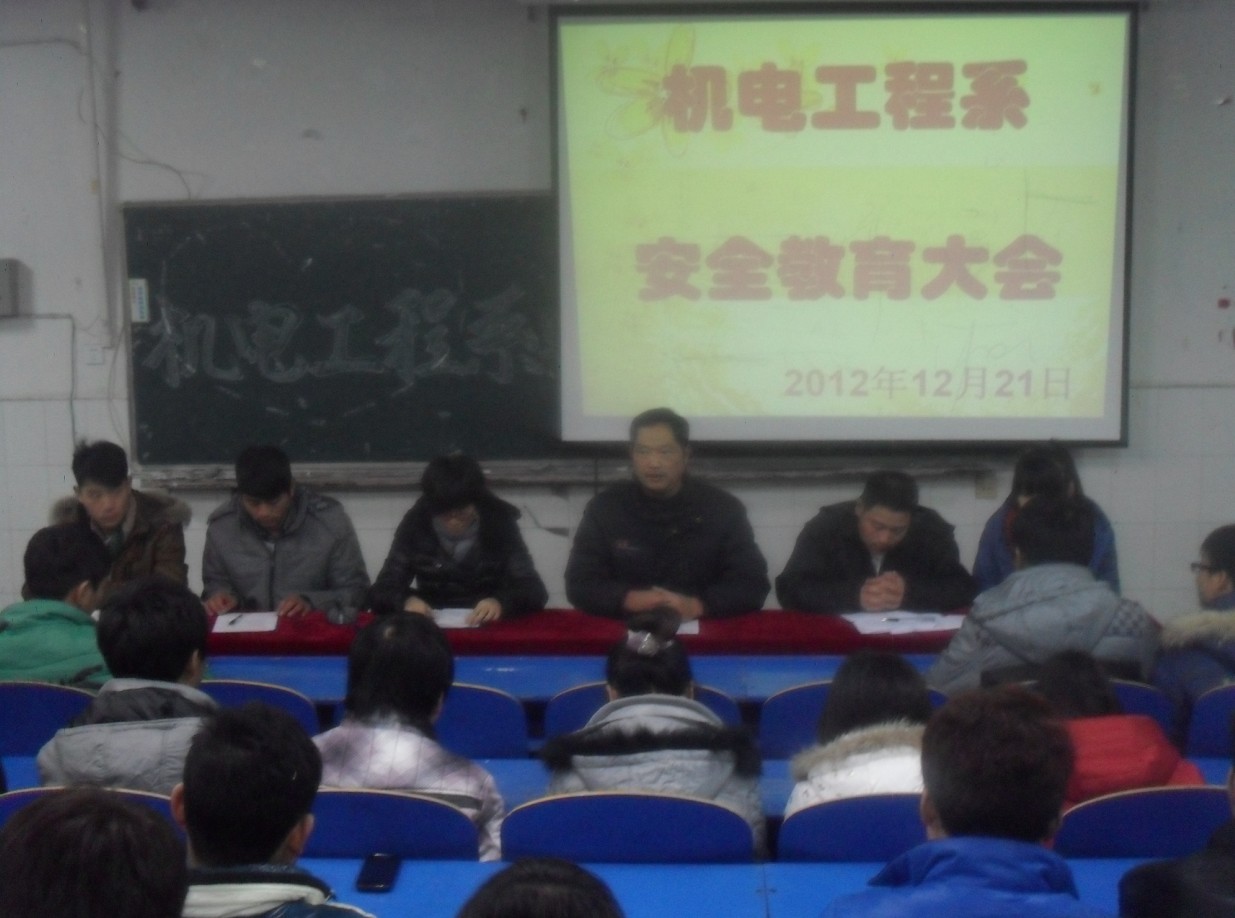 为进一步做好学院安全稳定工作,强化学生安全意识,机电工程系于12月21日下午五点半在一号教学楼111教室召开了安全教育专题会议。系党总支书记孙良平、团总支书记刘严、团总支学生会成员及各班级主要学生干部共一百余人参加了会议。