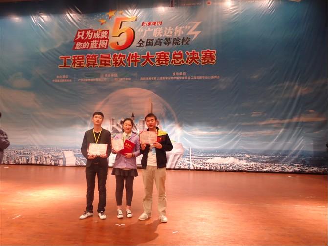 11月17日至19日,第五届全国高等院校广联达算量软件大赛总决赛在厦门理工学院隆重举行,我院管理工程系教师王红林指导的陈林、王璐璐、席小东三位同学以优异成绩荣获三等奖。