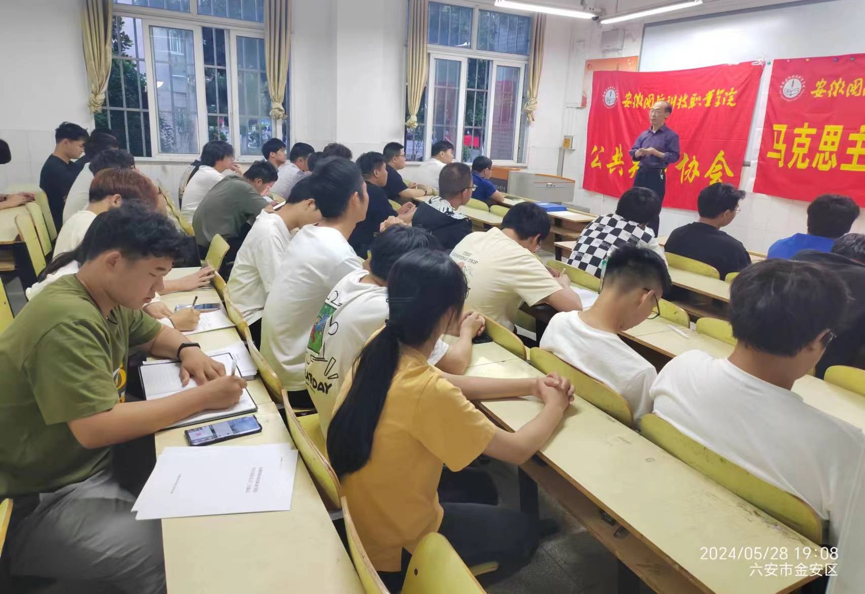 本网讯(马克思主义学院 汤晓莉)为充分发挥学生社团作用,激发思政教育活力,在学生中及时传达并认真贯彻落实党的方针政策和上级文件精神,积极做好大学生的思想引领工作,5月28日晚上,马克思主义学院在2教104开展了思想政治理论教育活动。活动由马克思主义学院党总支书记黄祥主讲,马克思主义学院下设的蓝曦心理协会、马克思主义学会、公共关系协会近50名学生参加了此次讲座。