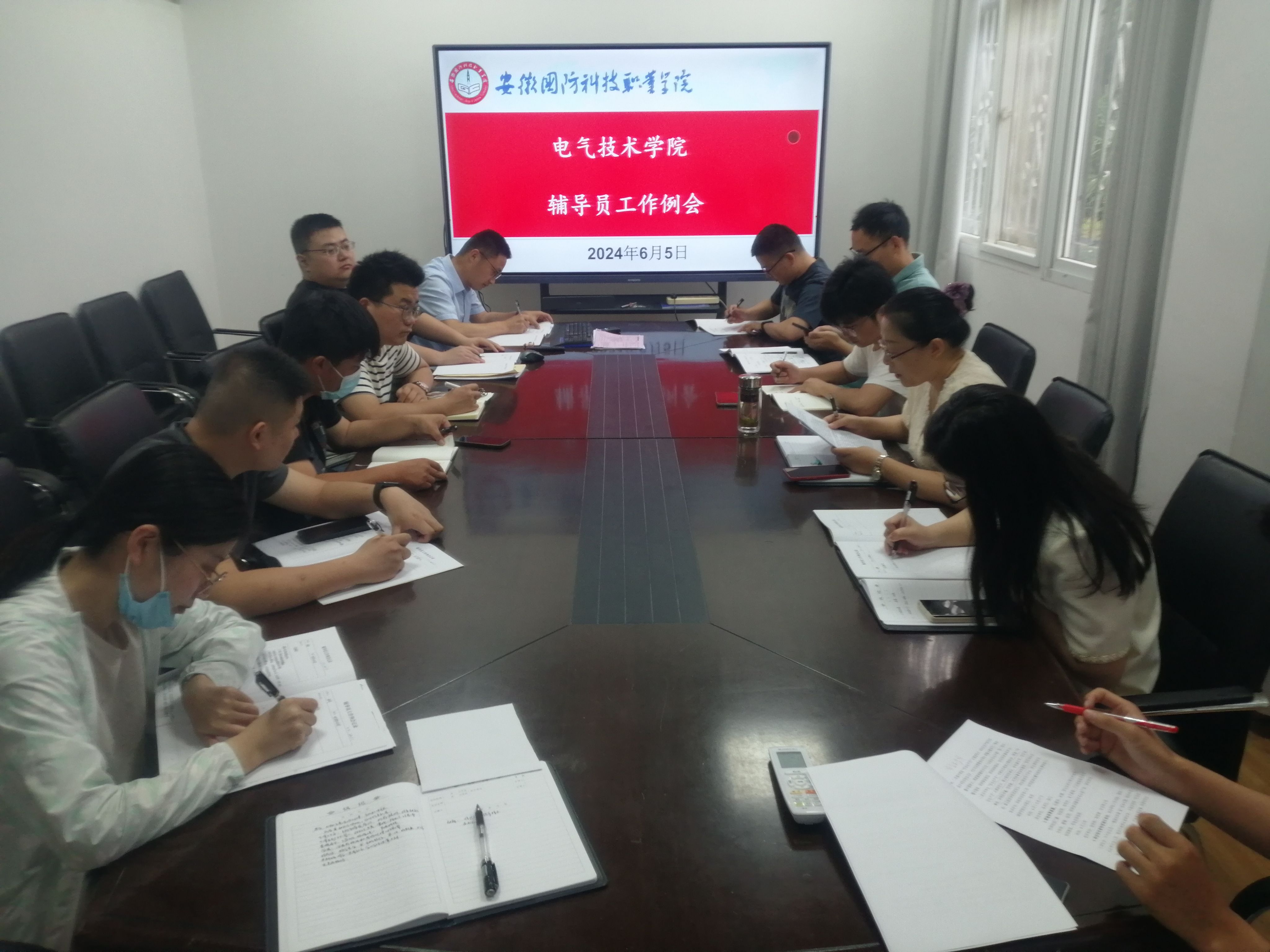 本网讯(电气技术学院 申晓伟)6月5日下午,电气技术学院在知行楼102会议室召开全体专兼职辅导员工作会议。党总支副书记张丽、全体专兼职辅导员参加会议。