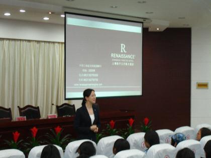 陈雪芬经理首先介绍了万豪国际集团的基本概况。然后,陈经理对万豪集团的品牌、奖励、员工培训和发展、员工设施、服务社区、实习生福利待遇、学生认可、酒店员工活动、上海万豪姊妹酒店活动等方面做了深入介绍。陈经理还与现场学生进行了沟通与互动,学生积极性很高,现场气氛较好。