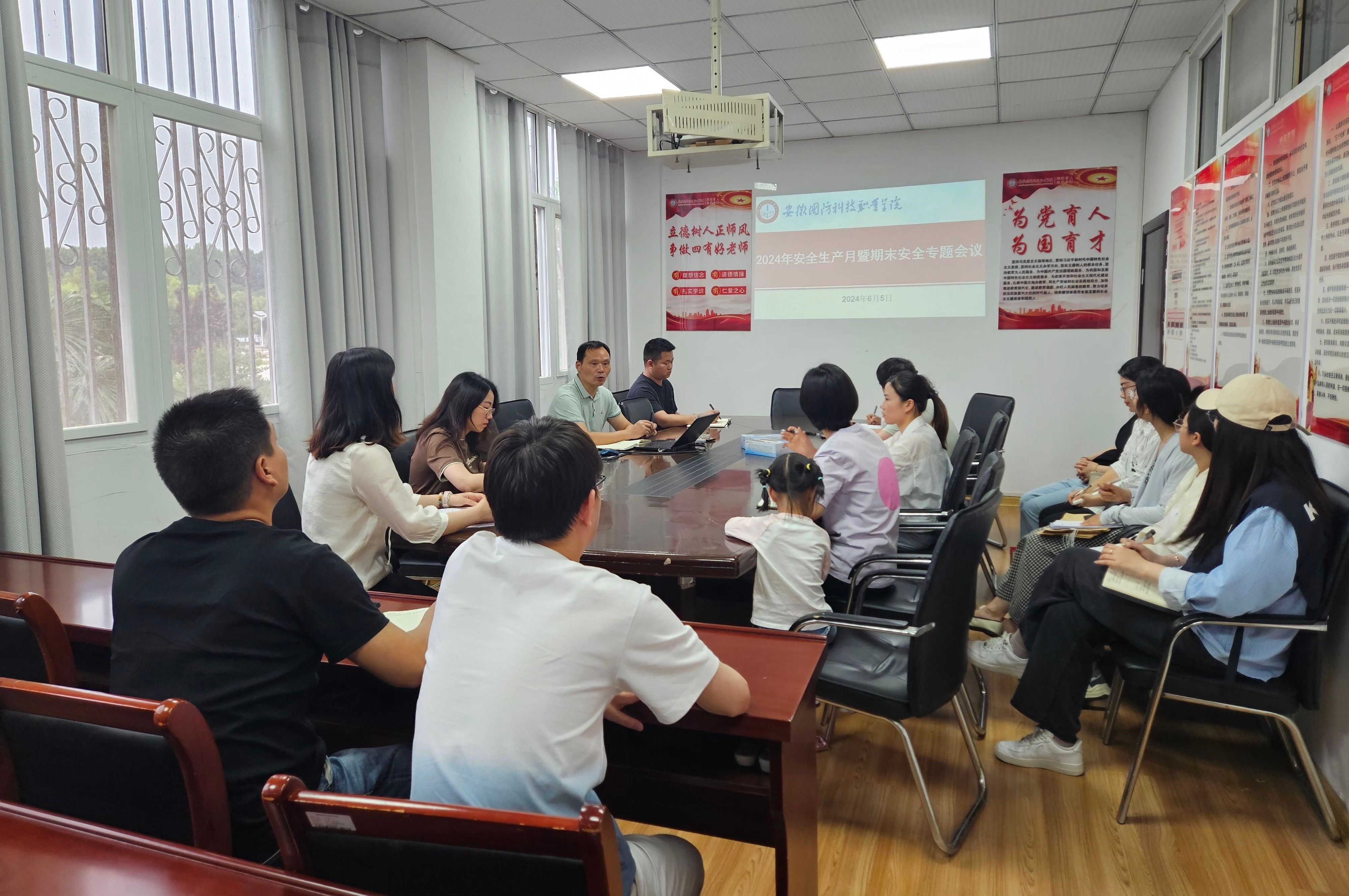 刘峰首先带领全体人员共同学习《学校2024年“安全生产月”活动实施方案》等文件,传达了学校有关专题会议精神,并结合日常学生安全教育工作实际,重点对方案中的活动内容、活动开展时间进行了详细的解读。他强调,各辅导员要高度重视学生安全教育,严格按照规定做好班级学生安全管理工作,同时要及时召开学生“安全生产月”专题安全教育主题班会,组织学生观看安全警示教育宣传片,确保主题班会开展的实效性。