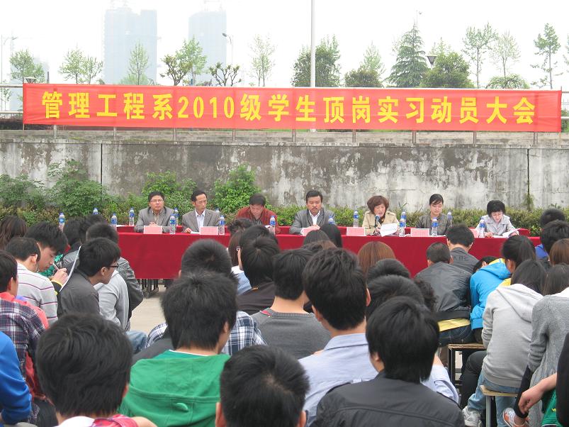 4月18日下午,管理工程系隆重召开2010级学生顶岗实习动员大会。系主要领导、各教研室负责人、2010级班主任及2010级全体学生参加了大会。会议由系办公室主任张圣霞主持。